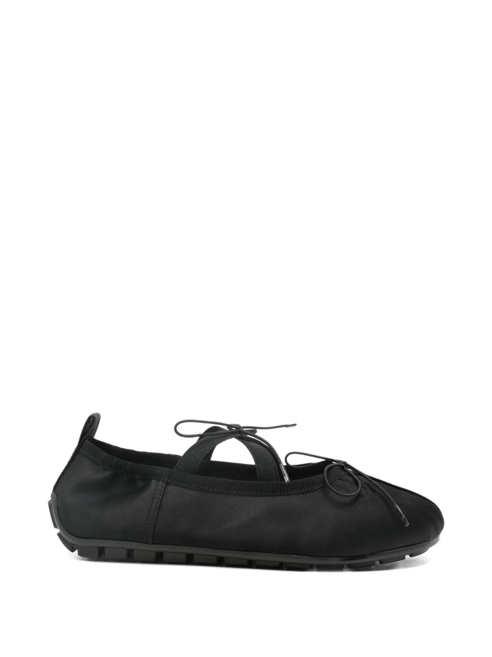 Черные эластичные ремешки, ребристая отделка, эластичная окантовка, круглый носок, плоская подошва. В комплекте прилагается защитный мешок для хранения.