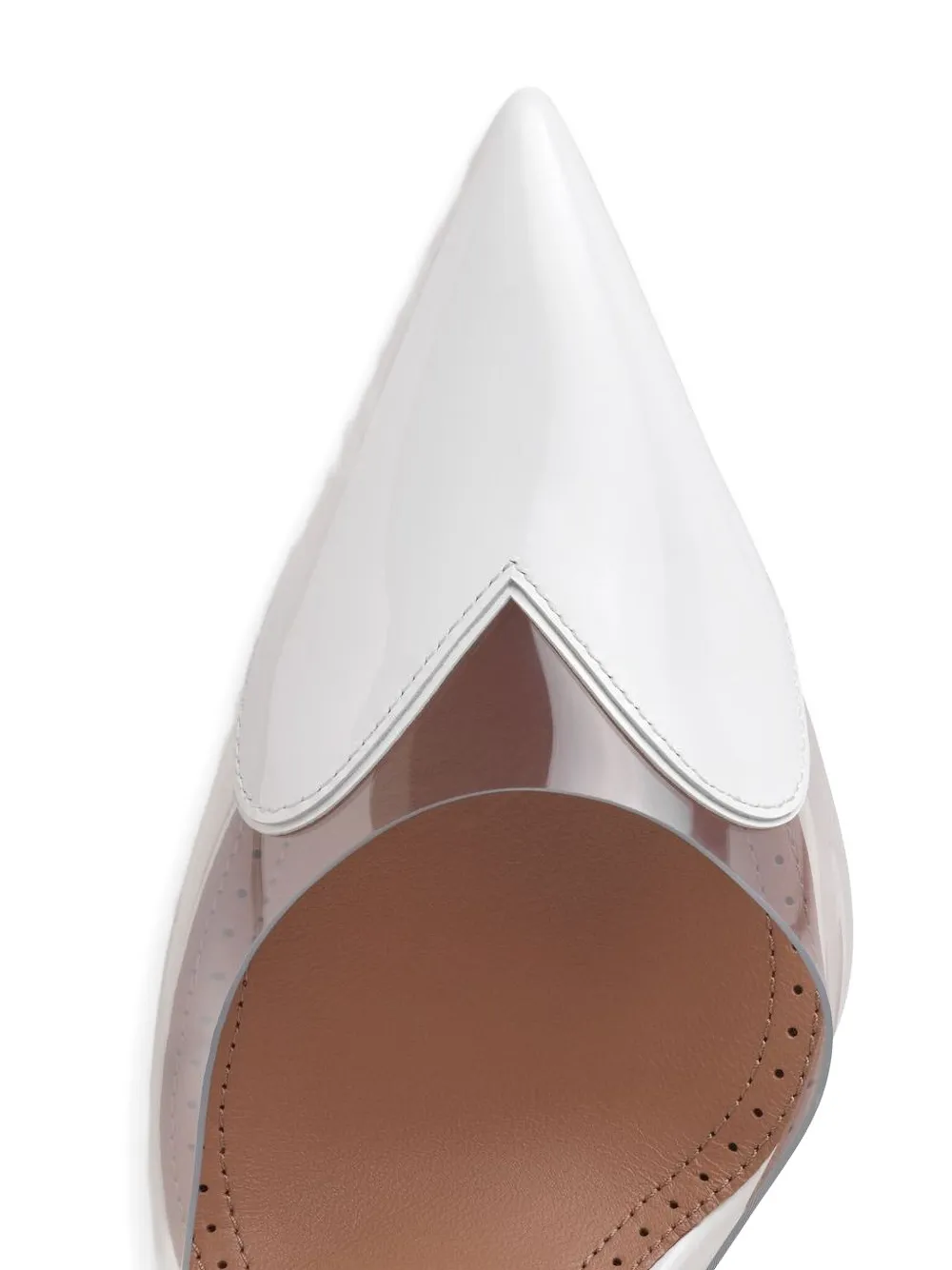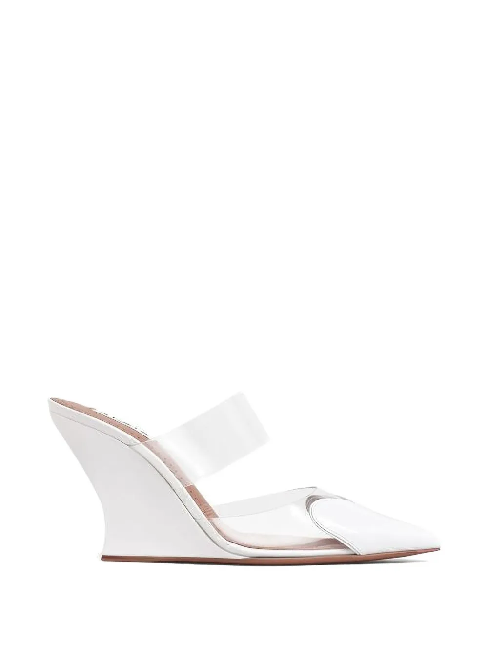 Белые прозрачные туфли на ремешке с сердечком, заостренным мысом и танкеткой