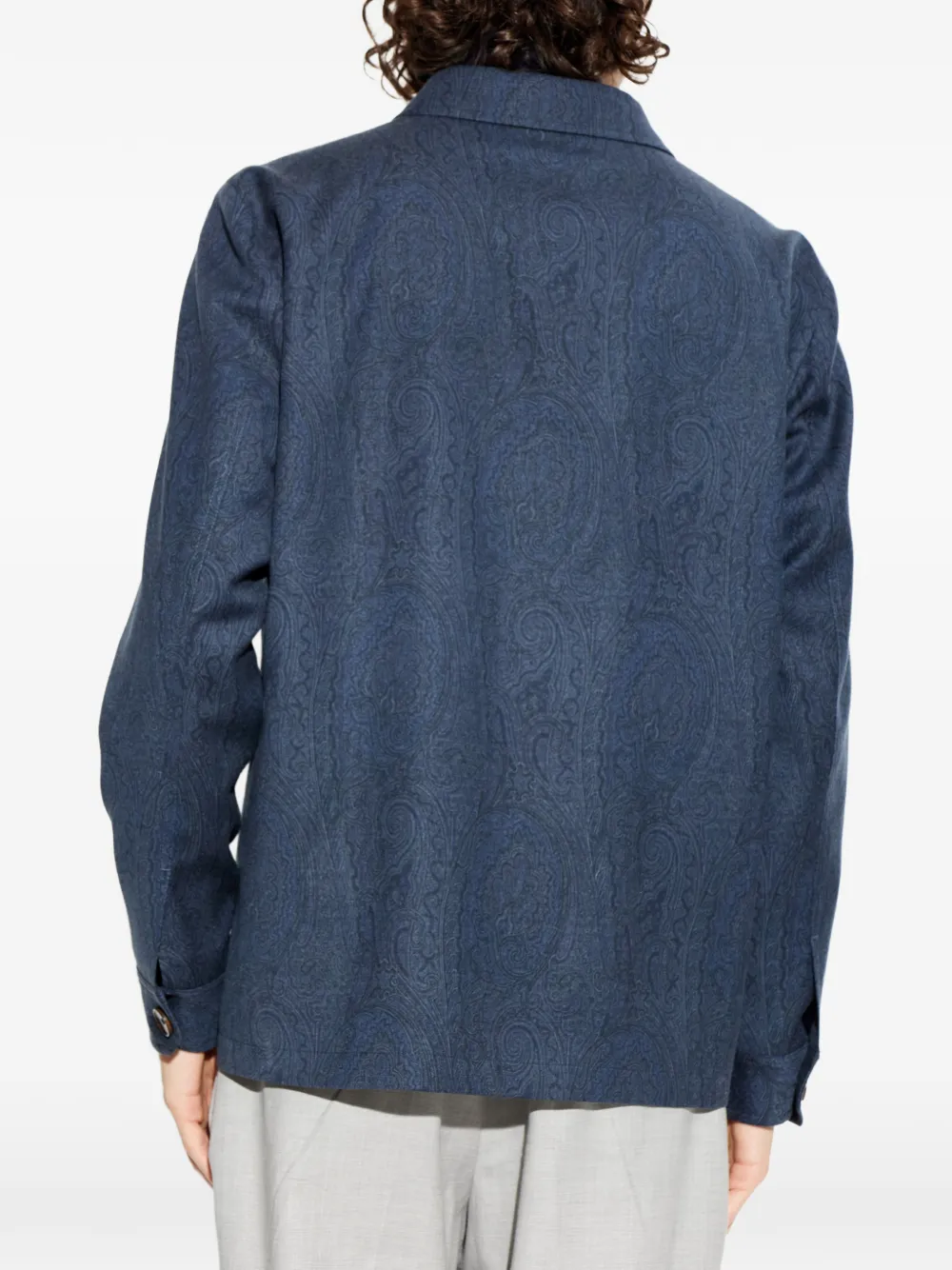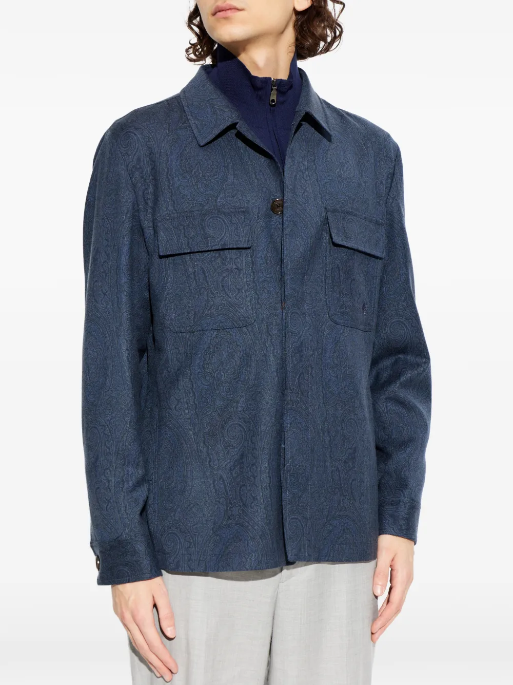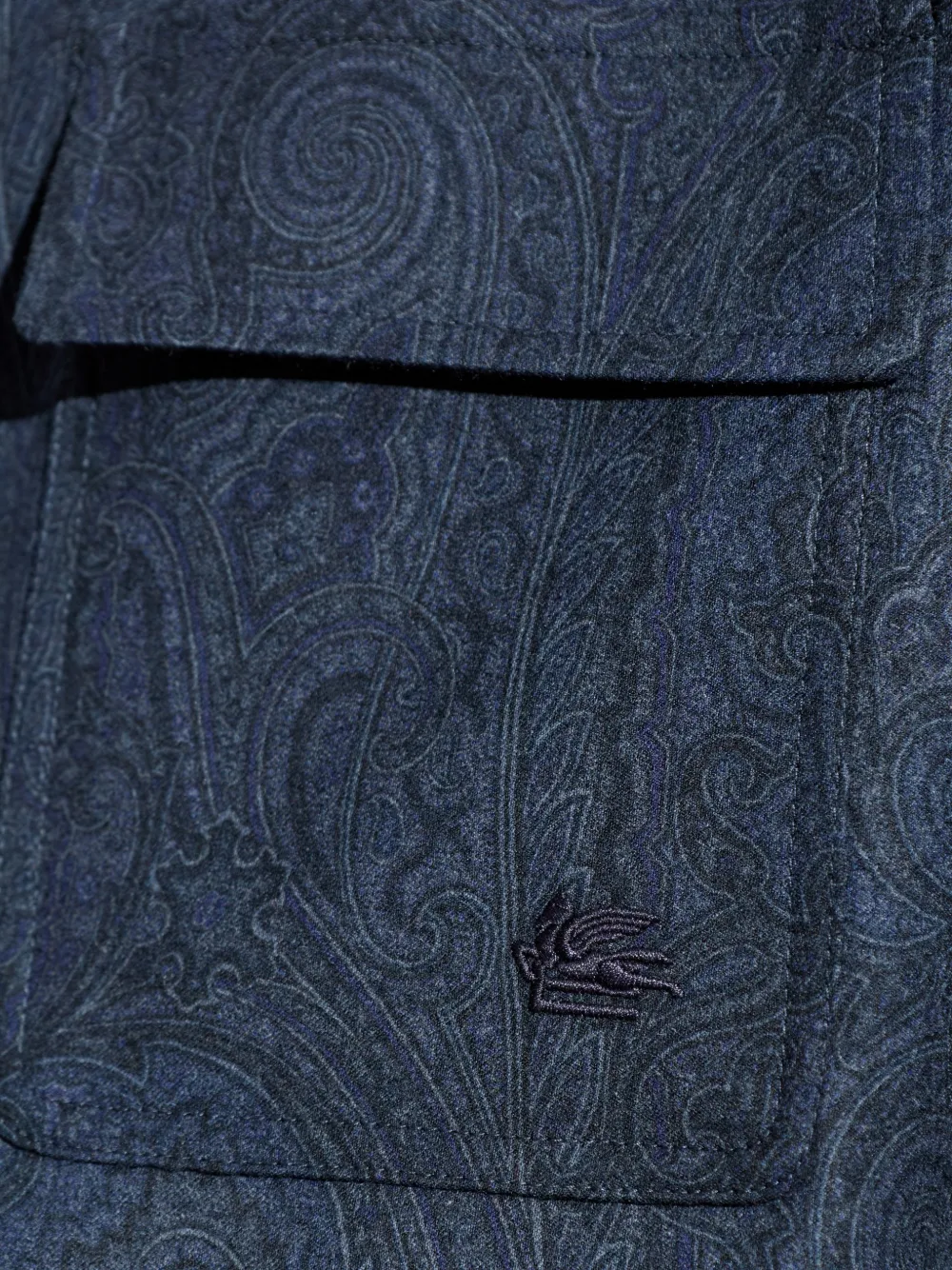 Синий узор пейсли, классический воротник, застежка на пуговицы, длинные рукава, манжеты на пуговицах, нагрудные карманы с клапанами