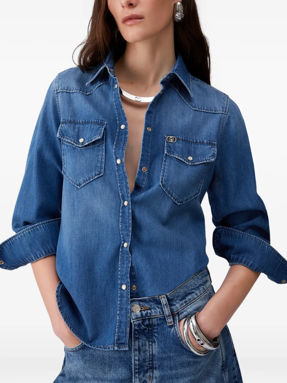 Джинсовая рубашка с эффектом стирки Liu Jo, синий