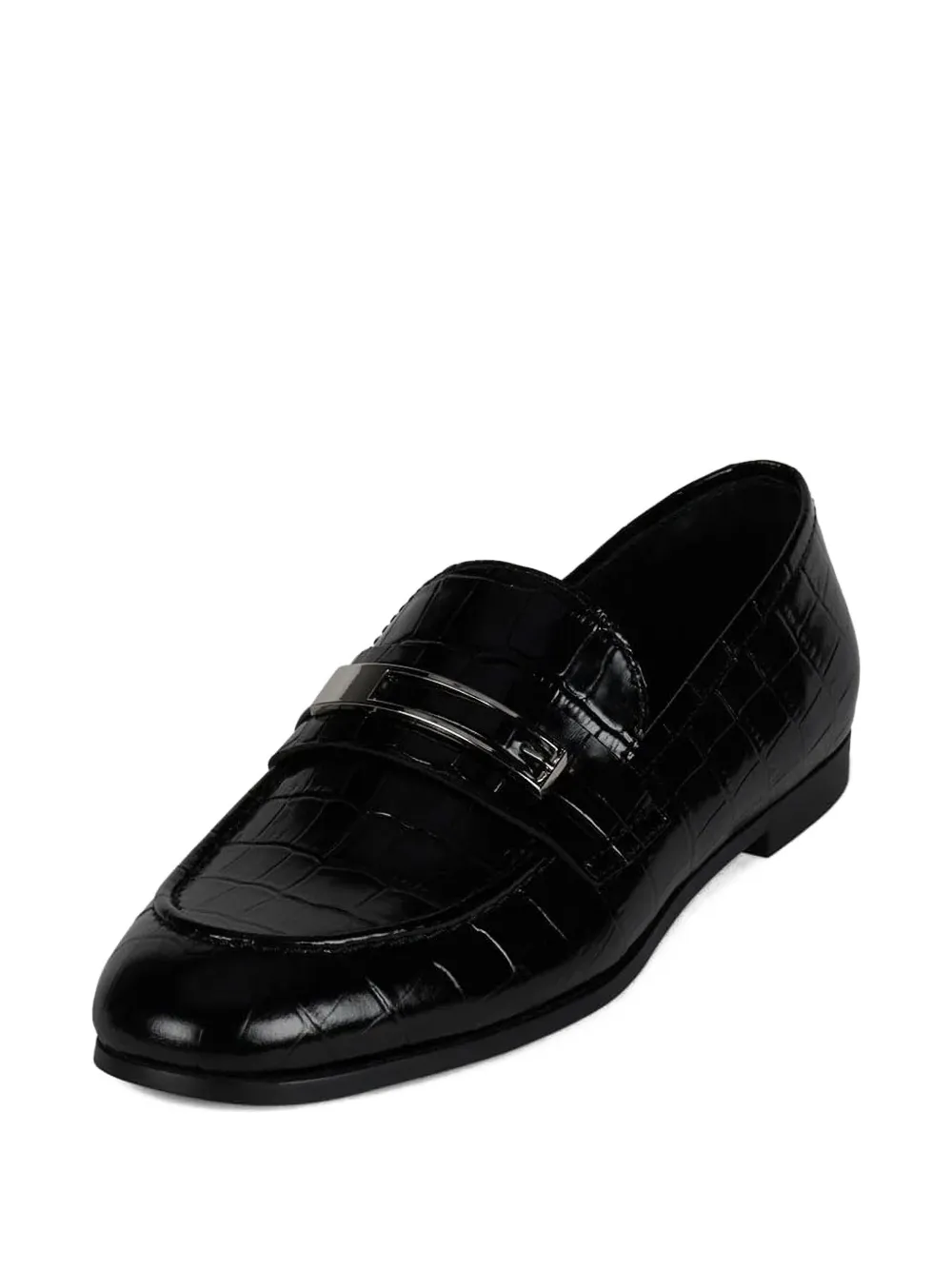 Черные слепоны с эффектом кожи крокодила, пряжкой и плоской подошвой