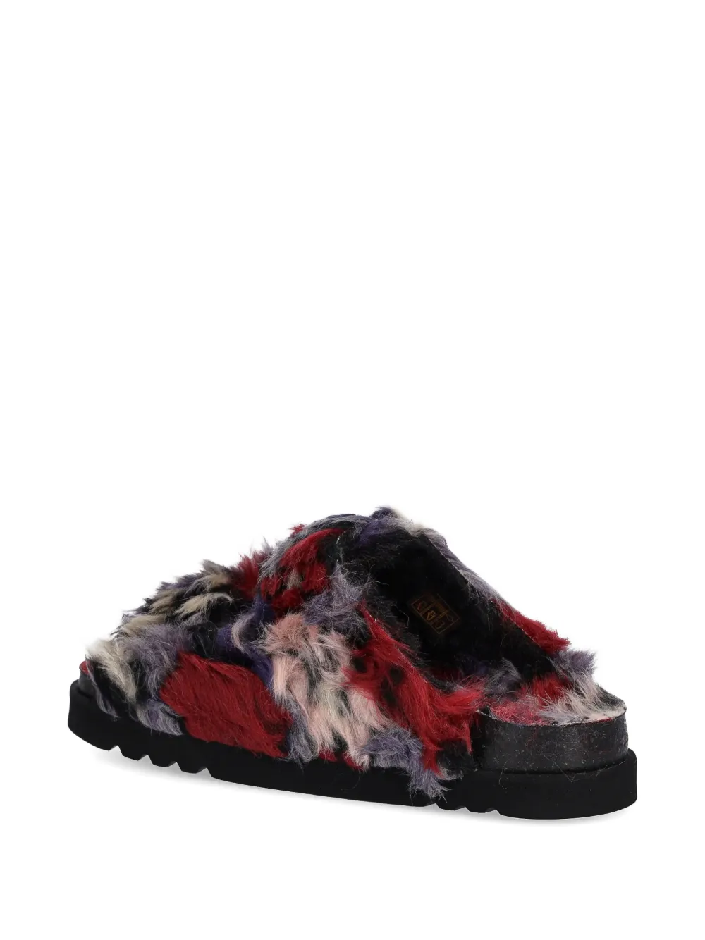 Красные/многоцветные, застежка на пряжке, рифленая подошва, открытый носок, модель без задника