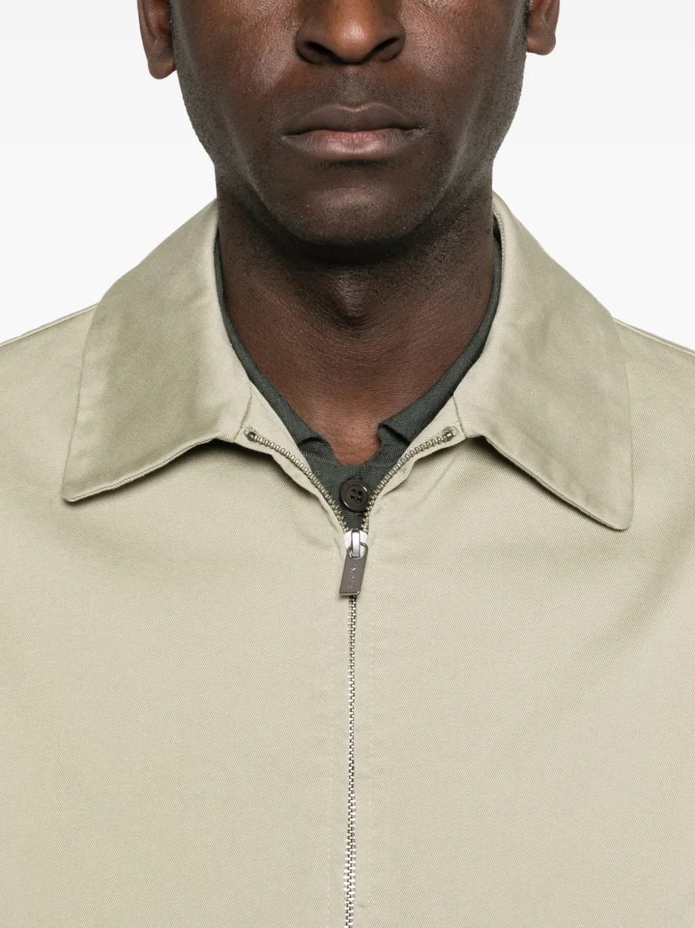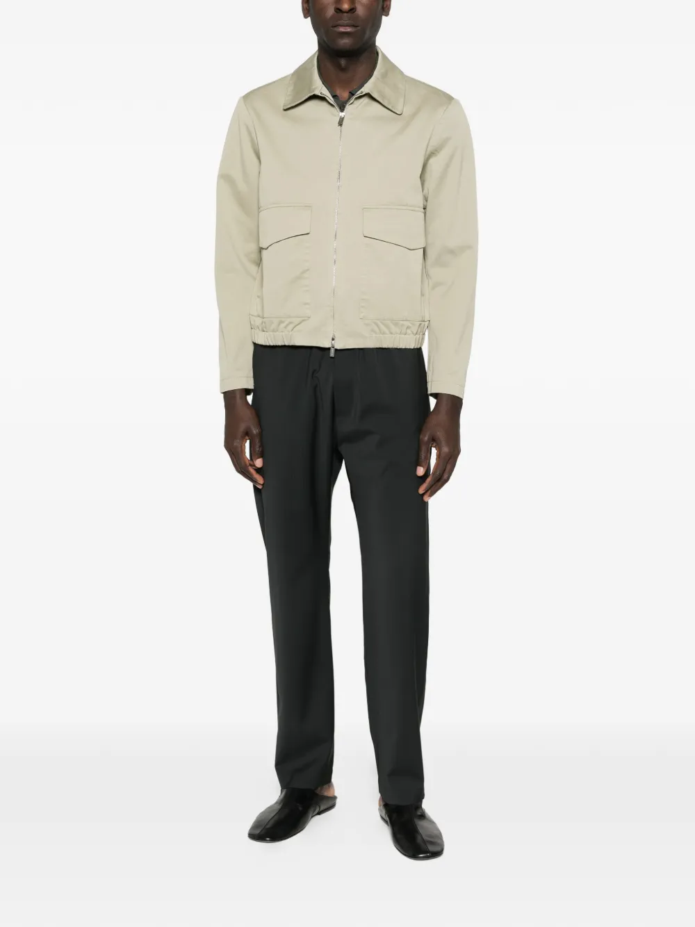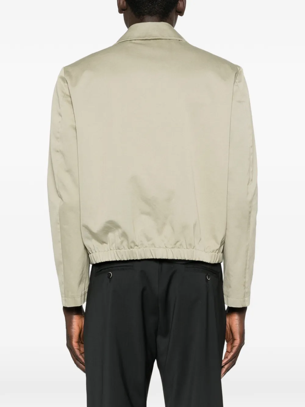 Шалфейно-зеленый цвет, клапаны на карманах, застежка-молния, классический воротник, эластичный нижний край