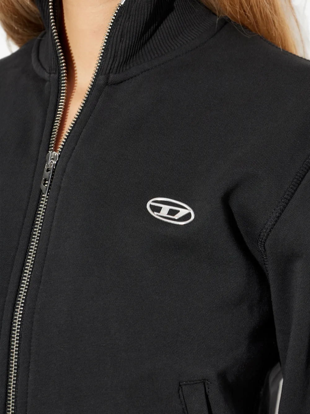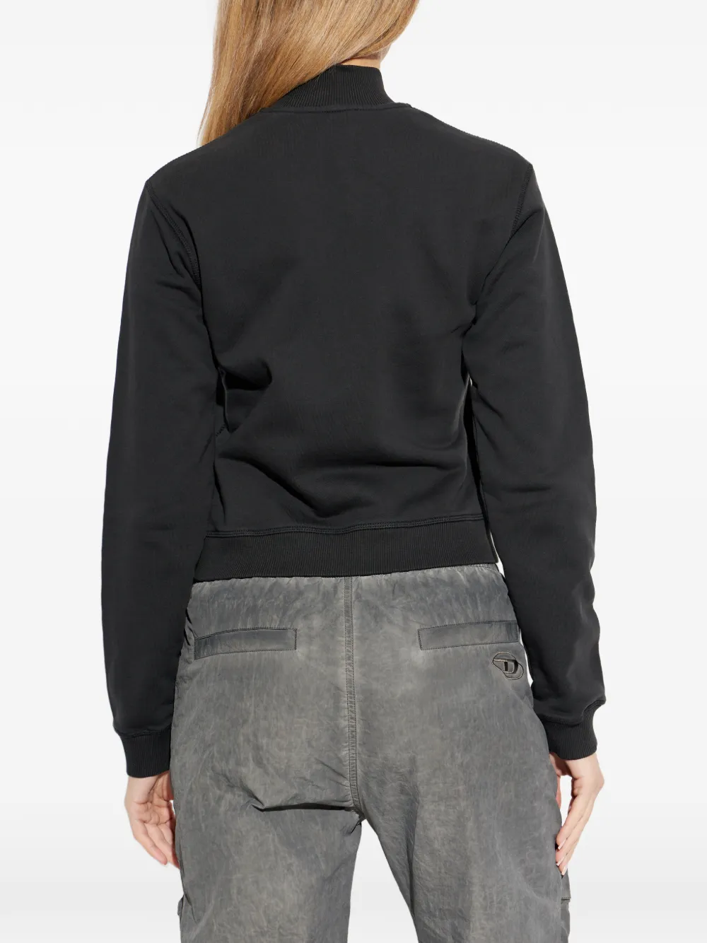 Черная куртка с логотипом, застежкой-молнией, высоким воротником, длинными рукавами и ребристым подолом