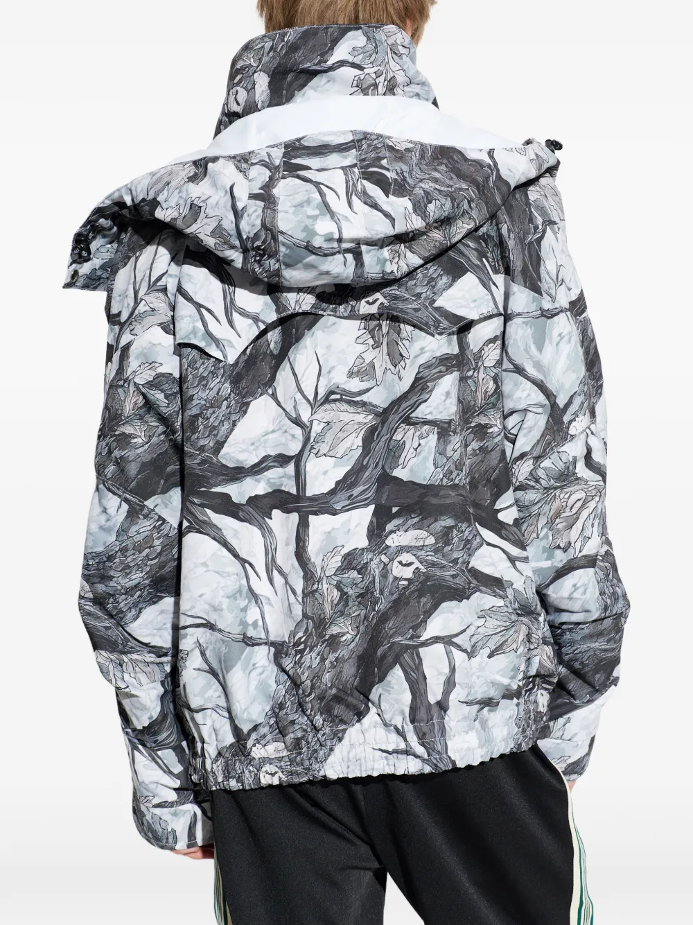 Белый и разноцветный с капюшоном, застежкой-молнией, клапанами на карманах, манжетами на липучках