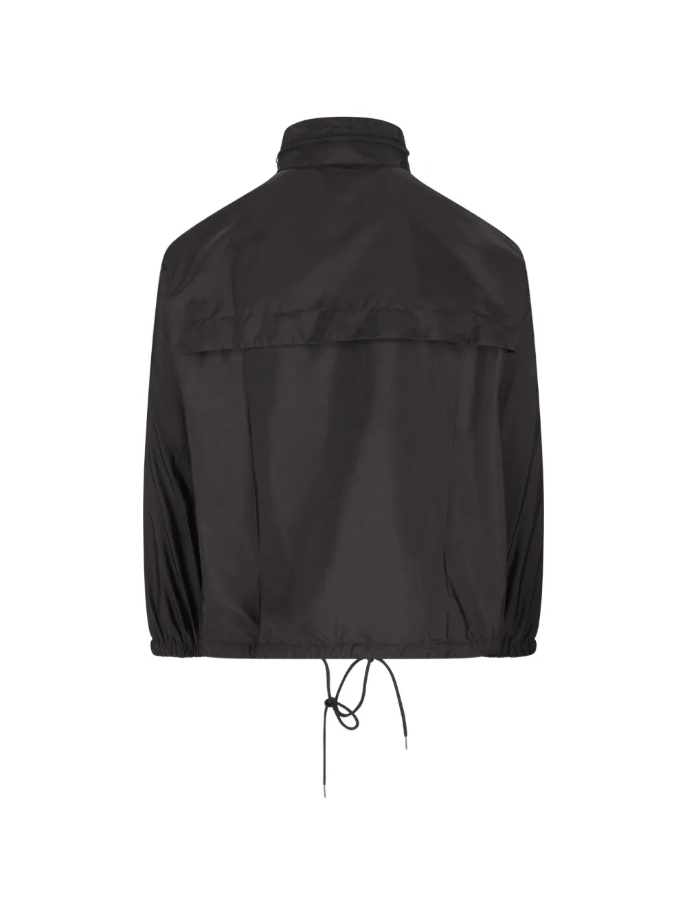 Черная куртка с застежкой-молнией, высоким воротником, логотипом, кулиской по подолу и эластичными манжетами