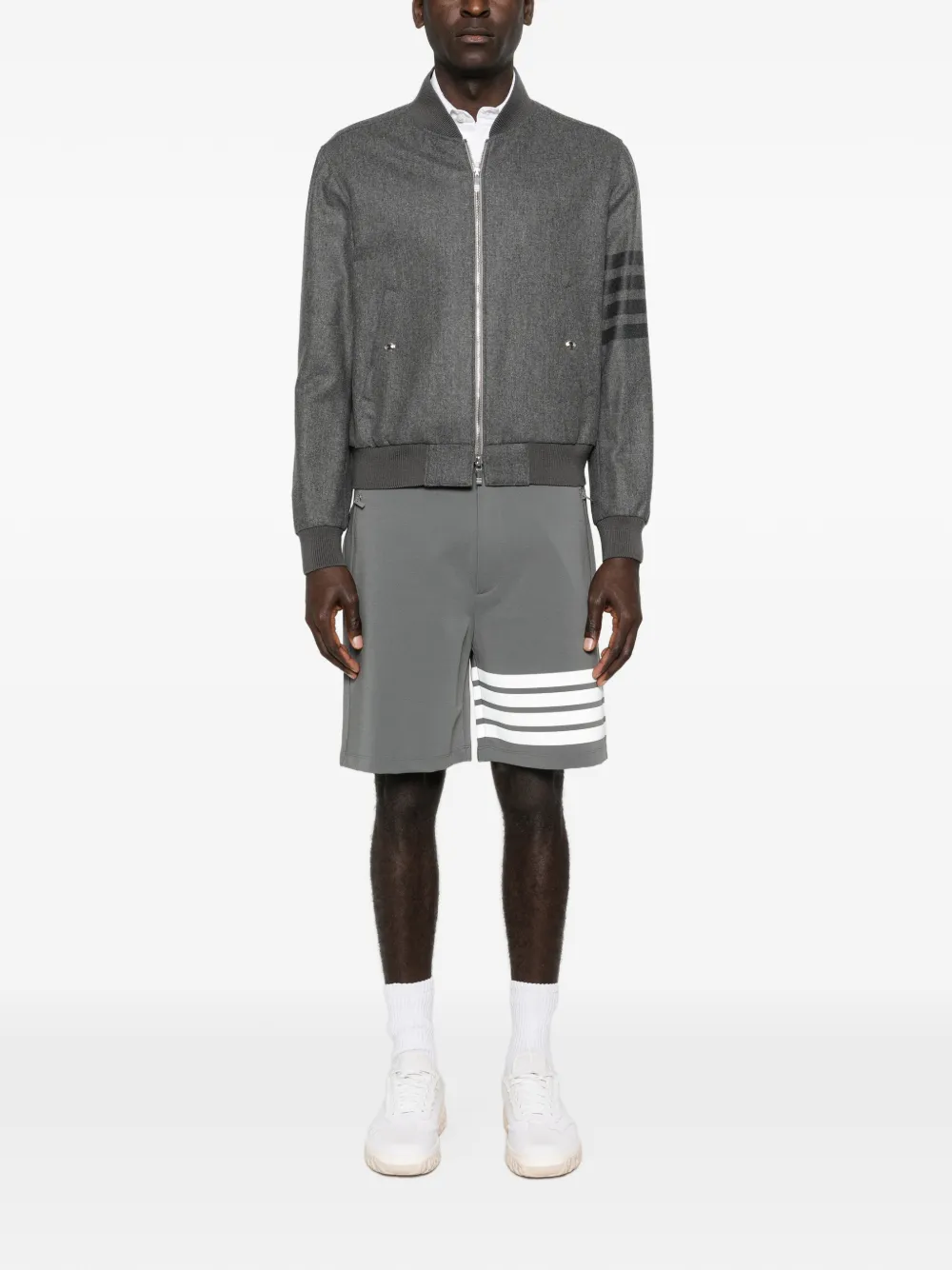 Бомбер с полосатыми деталями Thom Browne, серый