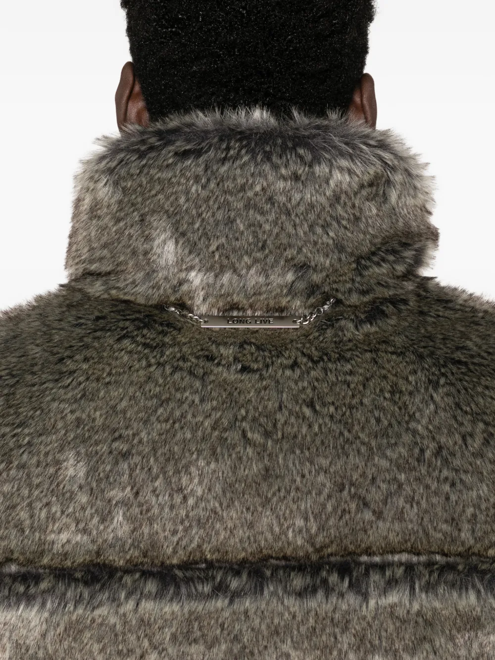 Коричневая куртка из искусственного меха с застежкой-молнией, воротником-стойкой, эластичным подолом и нашивкой с логотипом