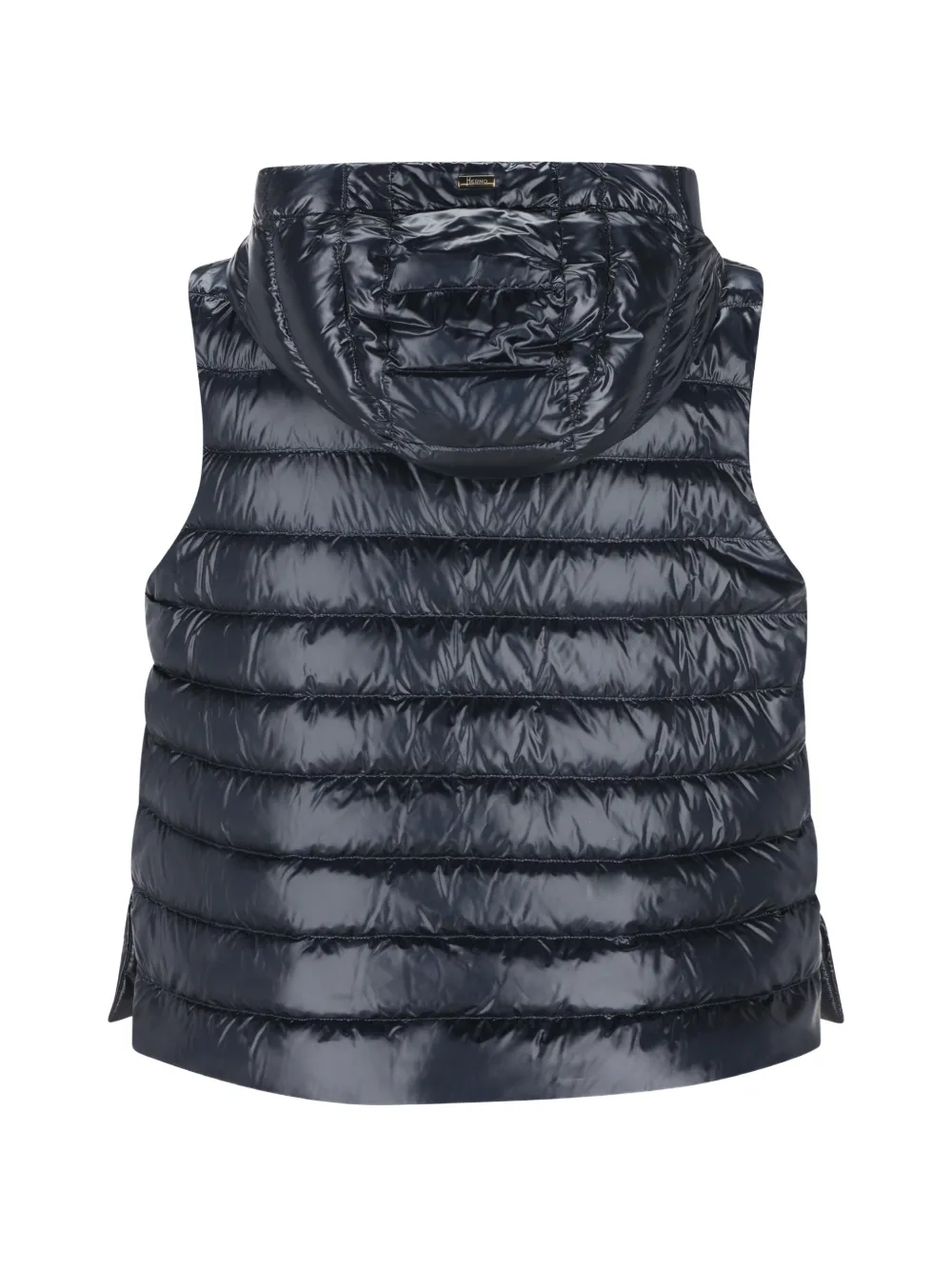Синий стеганый жилет с капюшоном, застежкой на молнии и боковыми разрезами