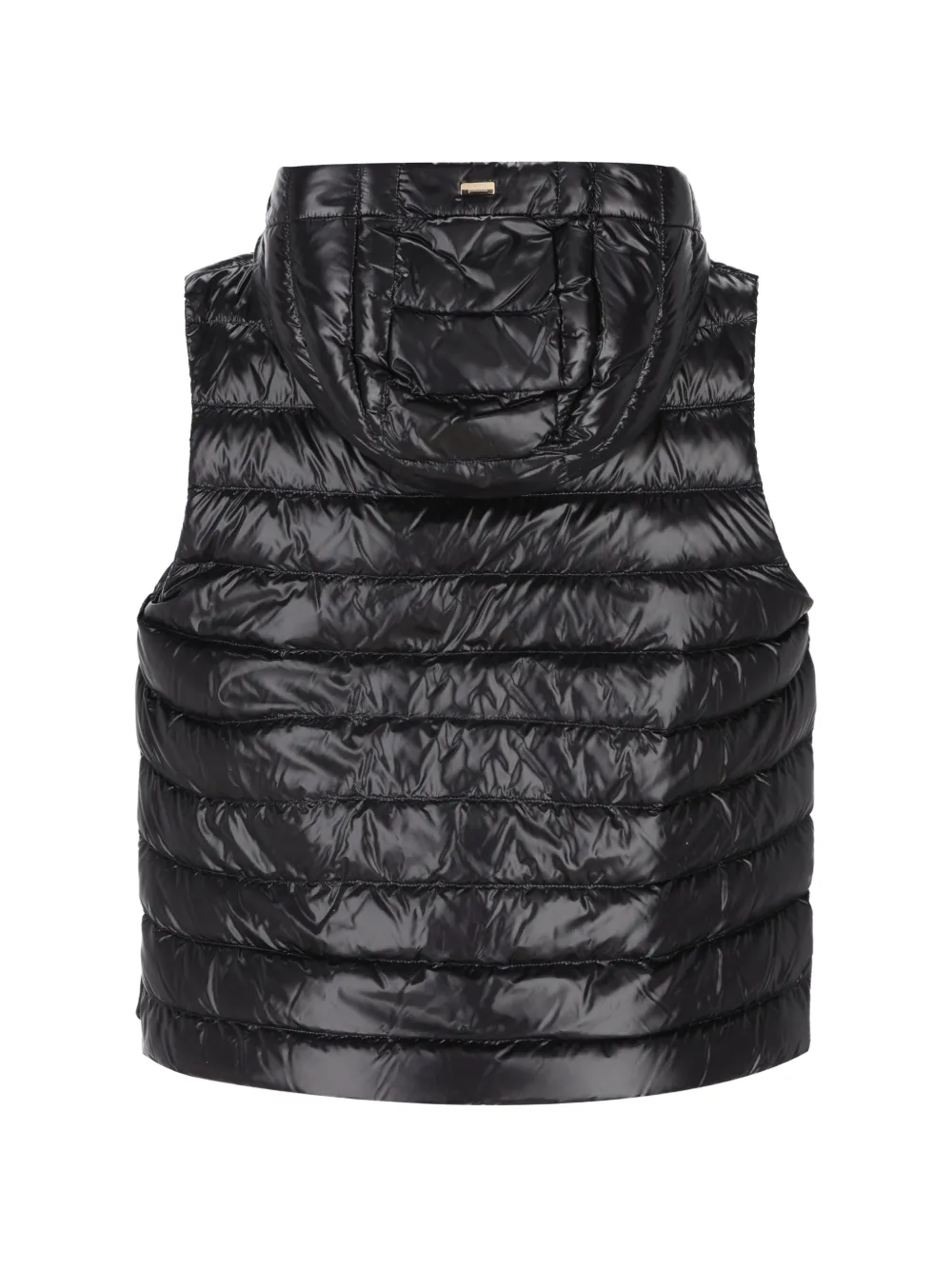 Черная стеганая жилетка с капюшоном, застежкой-молнией и шлевками