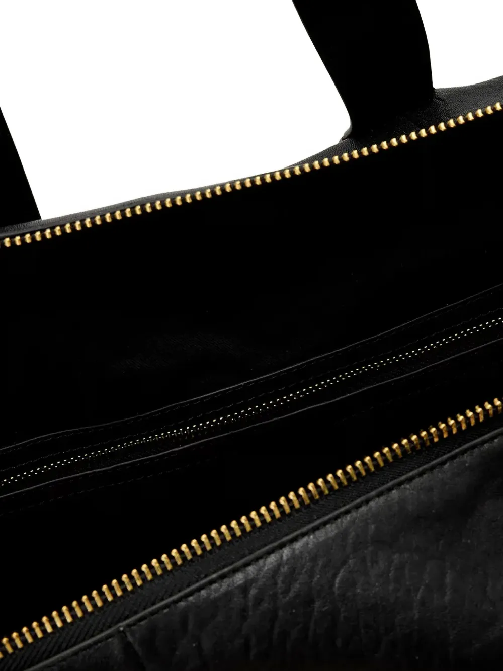 Черные верхние ручки, наплечный ремень, застежка-молния, прямоугольная нашивка с логотипом, фурнитура золотистого оттенка