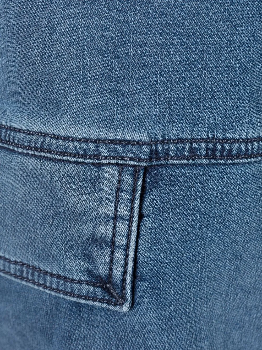 Эффект потертости, нашивка с логотипом сзади, петли для ремня, эластичный пояс, ремень на талии, зауженный крой, два прорезных кармана по бокам, два накладных кармана по бокам и два кармана с клапанами сзади.