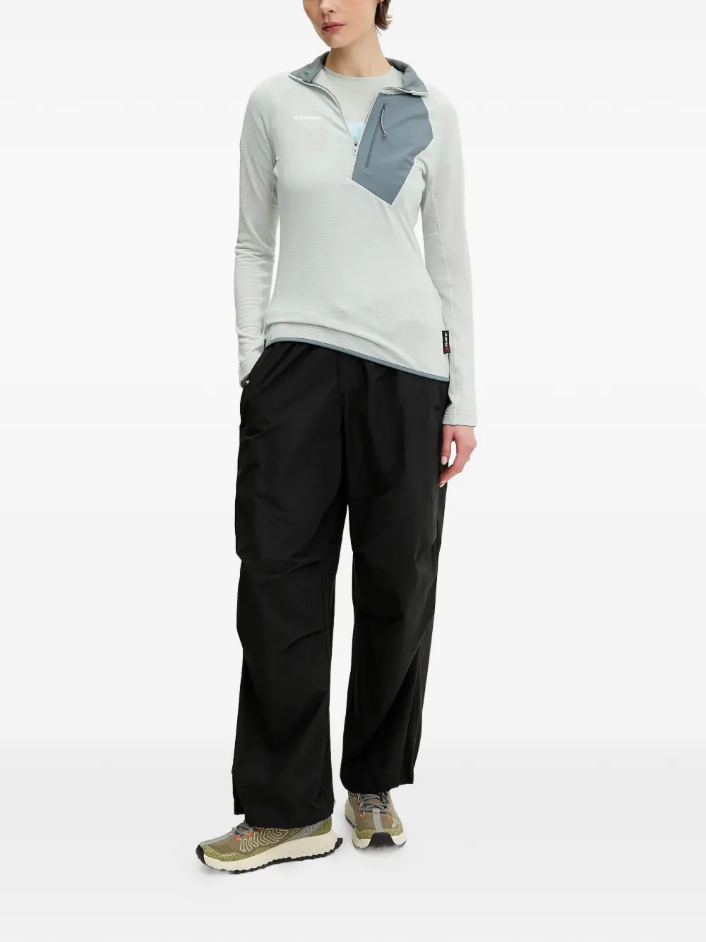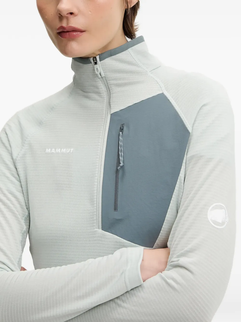 Светло-зеленый, застежка-молния наполовину, нагрудный карман, высокий воротник, длинные рукава
