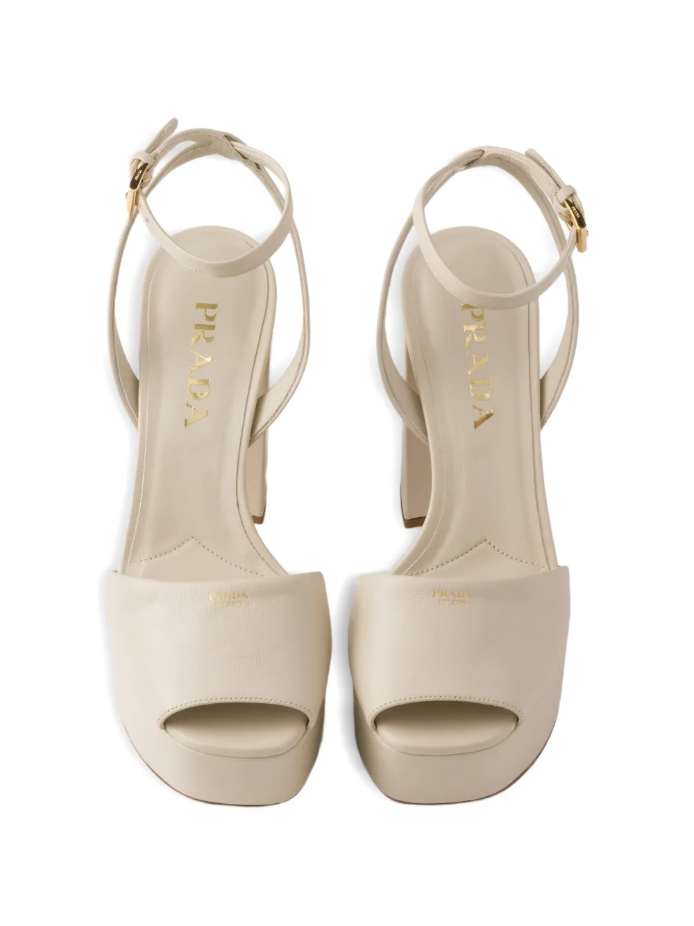 Кожаные босоножки на платформе Prada, бежевый