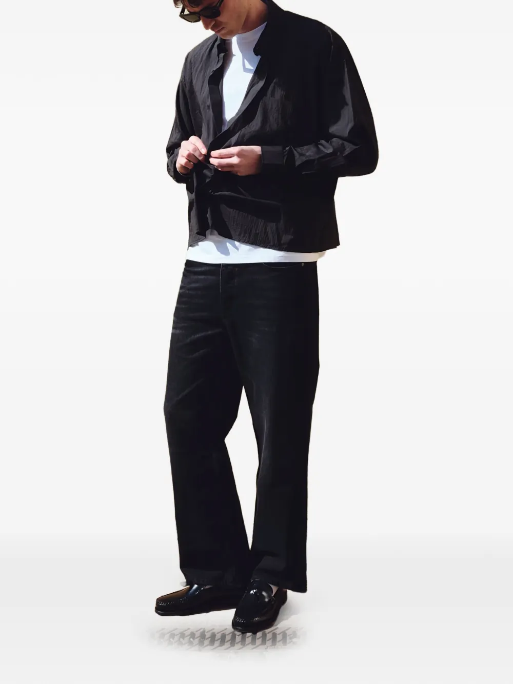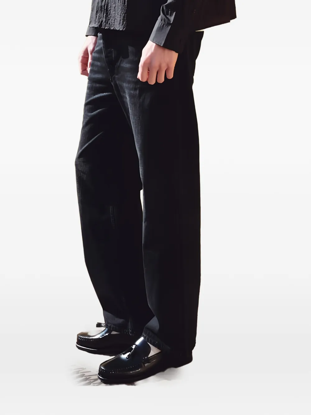 Джинсы черного цвета с выбеленным эффектом и прямым кроем. Органический хлопок 100%