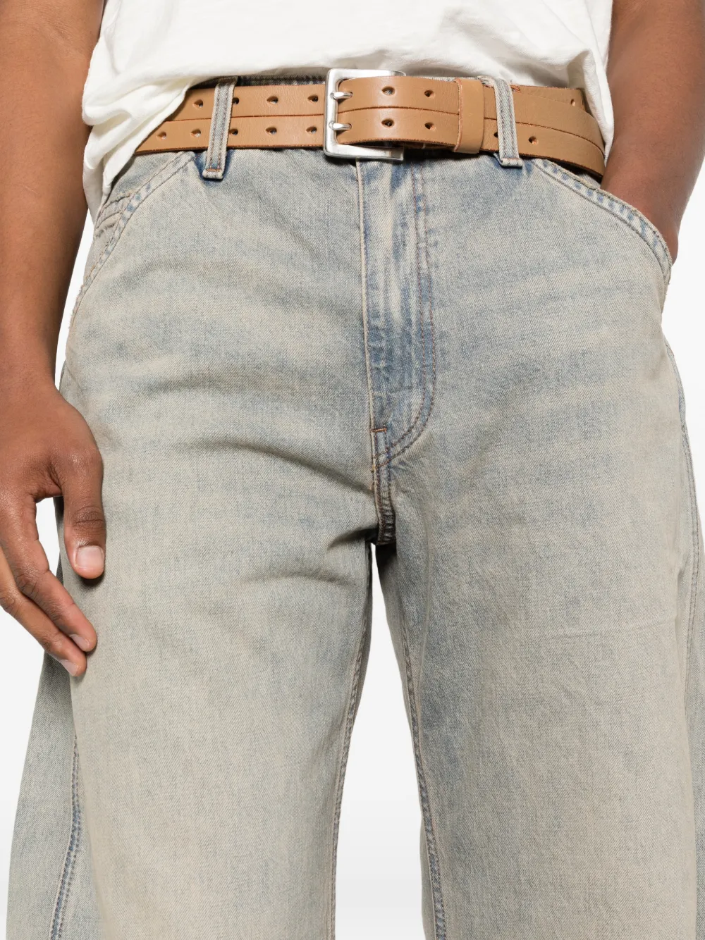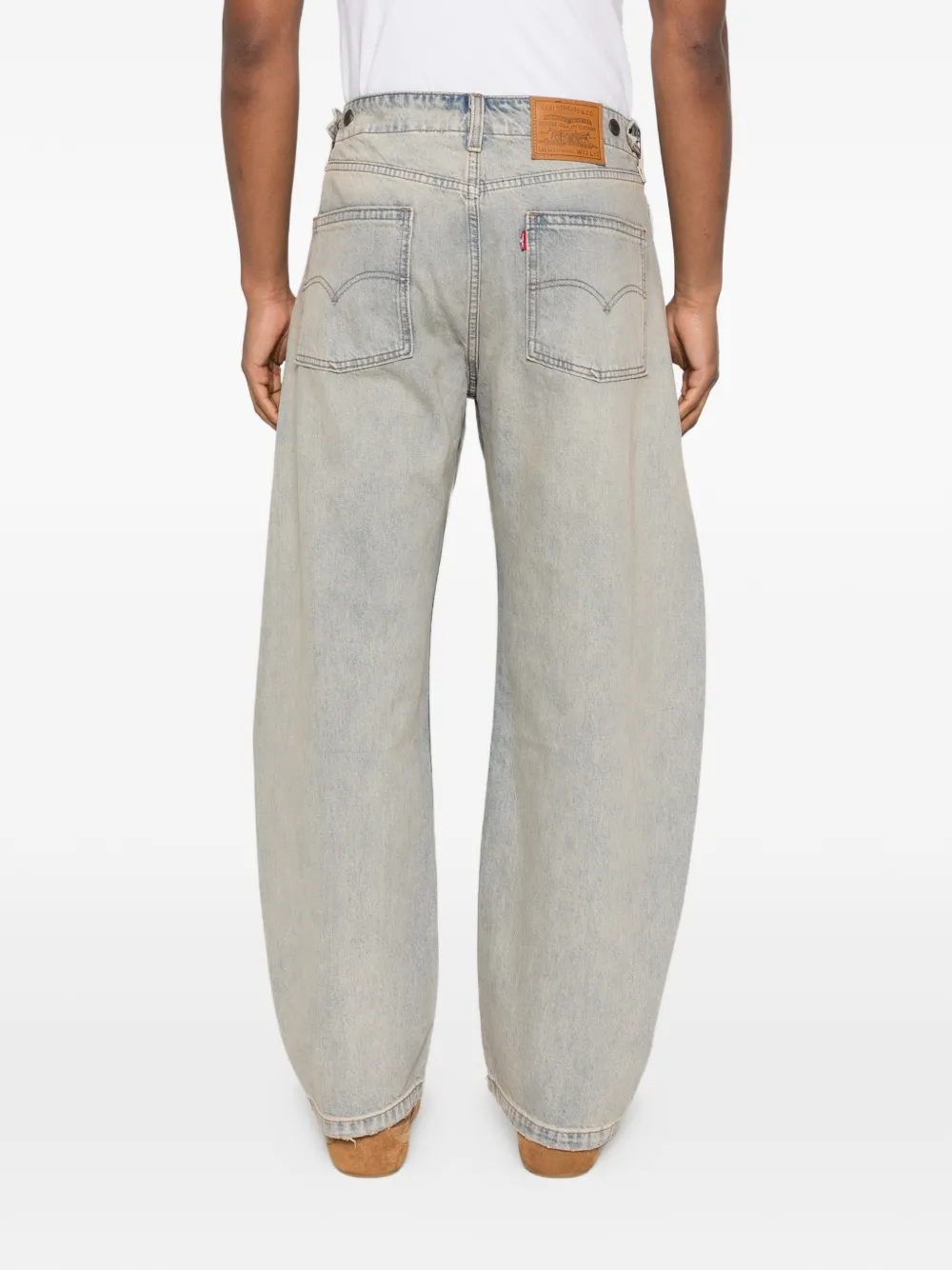 Джинсово-синие джинсы фасона "баррель" с швами и необработанным краем