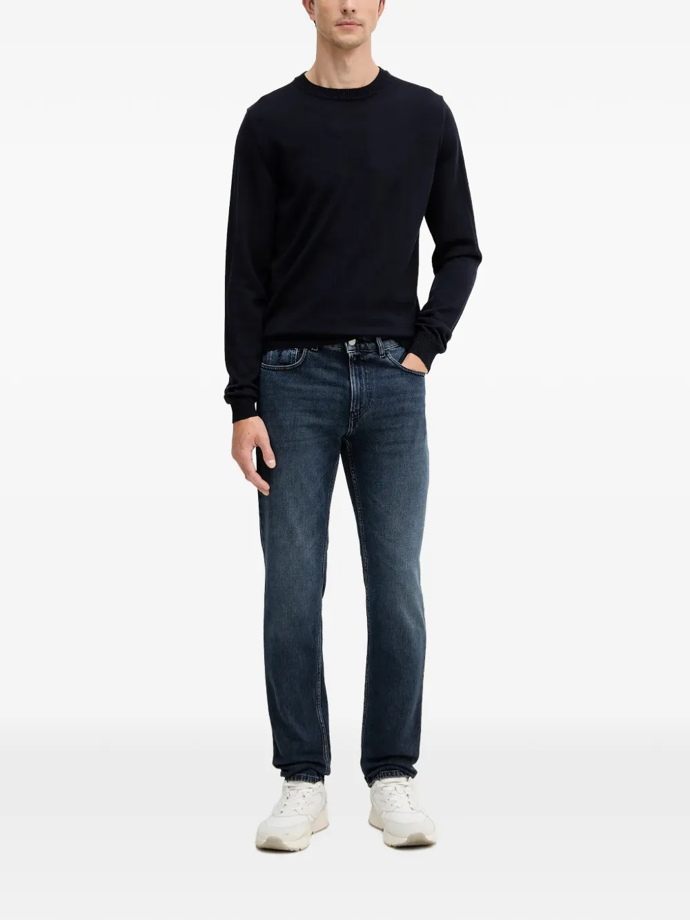Синий патч, задние карманы, шлевки для ремня, стандартный крой, стиль с пятью карманами