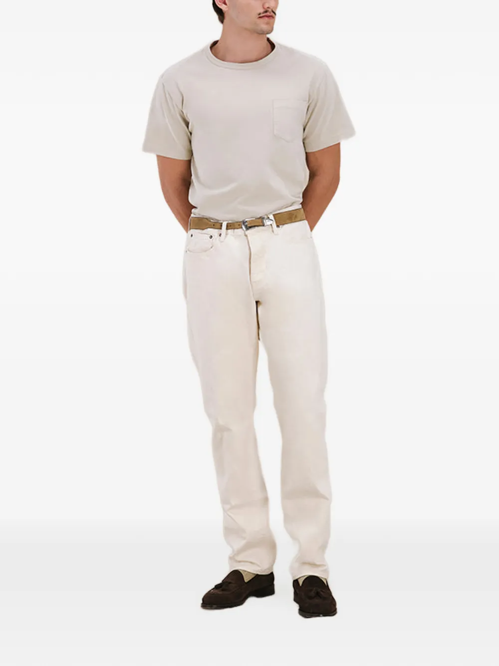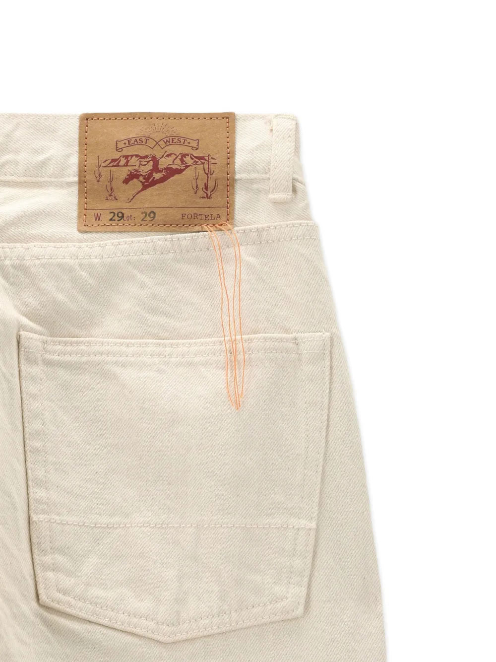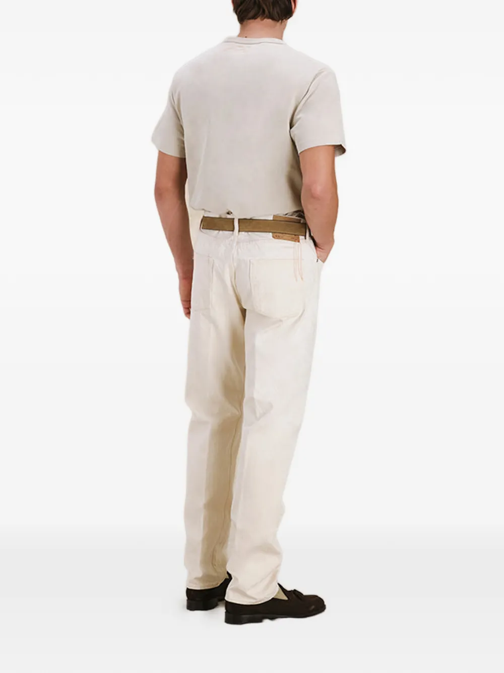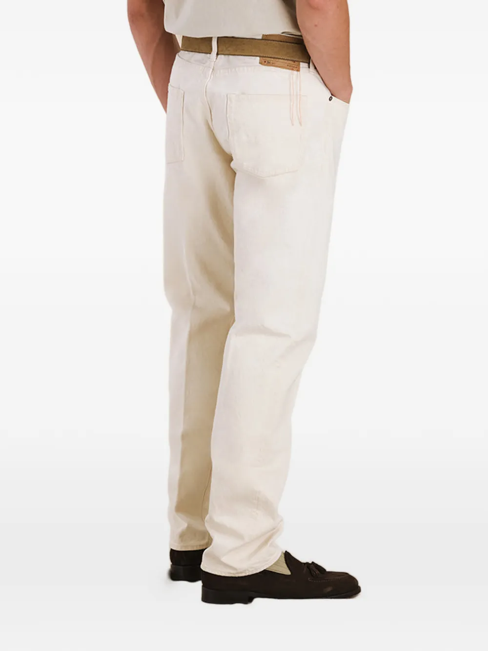 Бежевый цвет, пять карманов, нашивка с логотипом