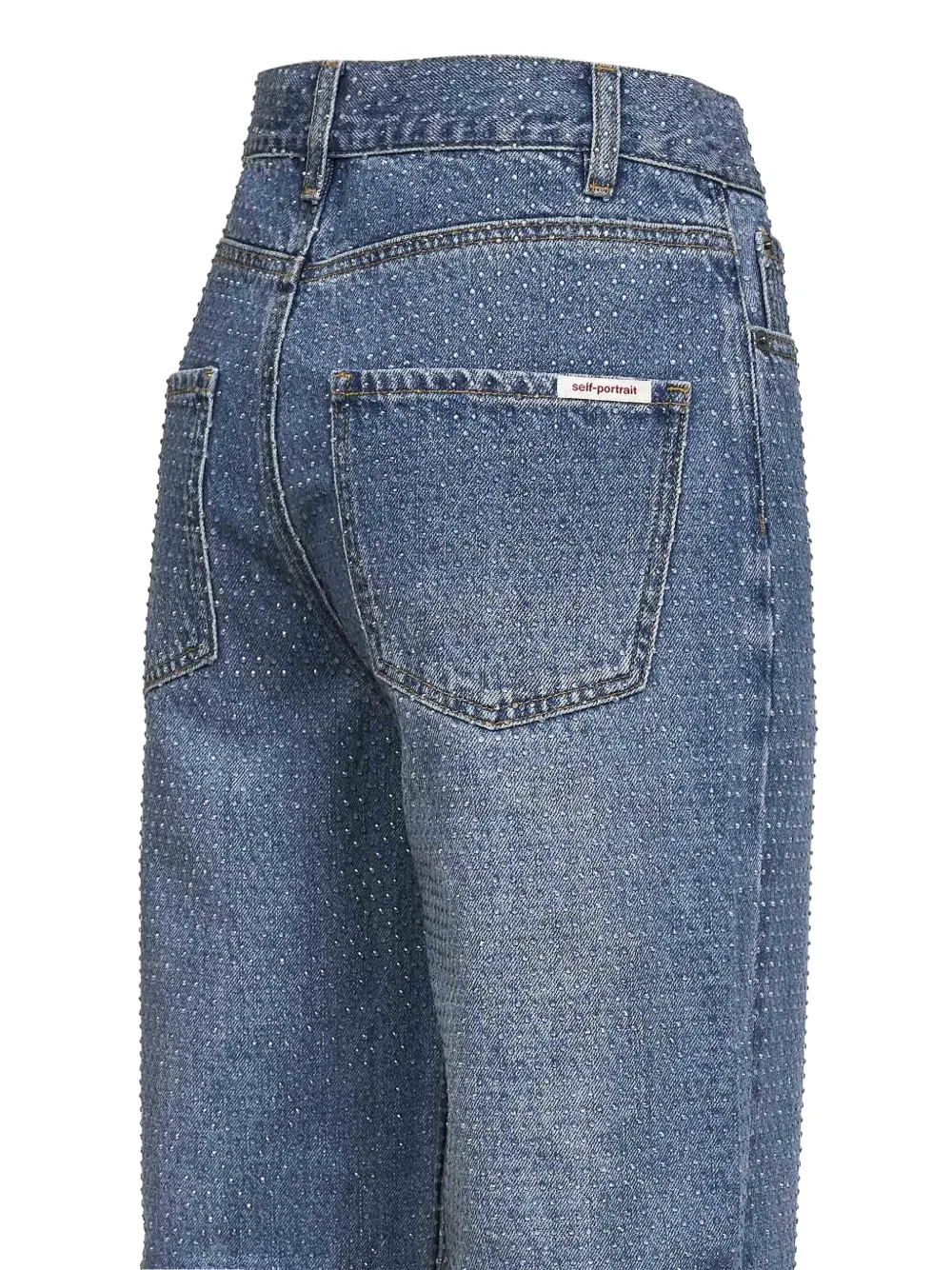 Прямые джинсы с стразами Self-Portrait, синий 69 261₽