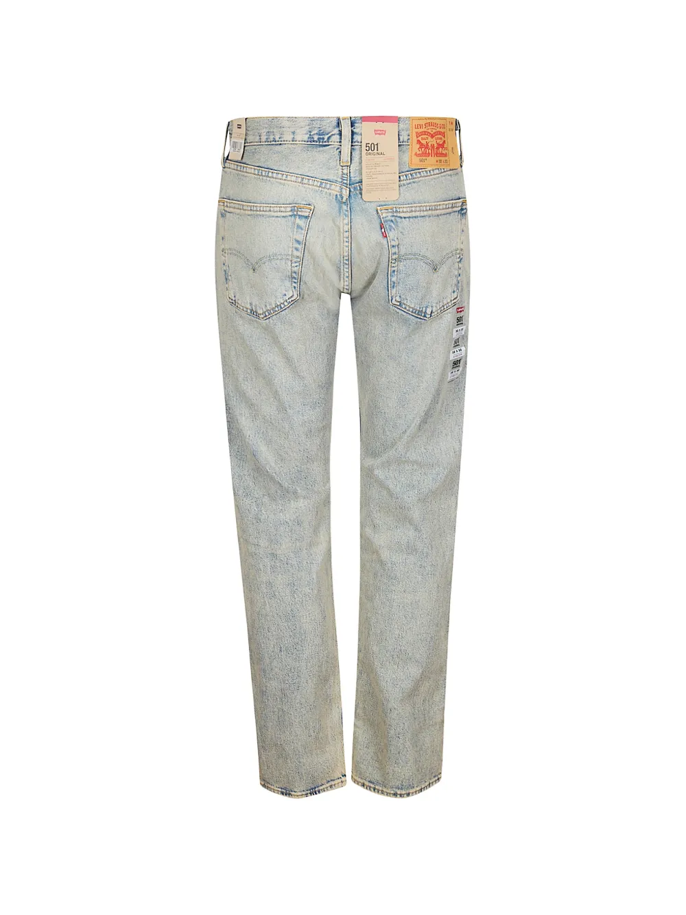 Светло-голубой цвет, застежка на пуговицы, пять карманов, шлевки для ремня, прямой крой, тональная строчка