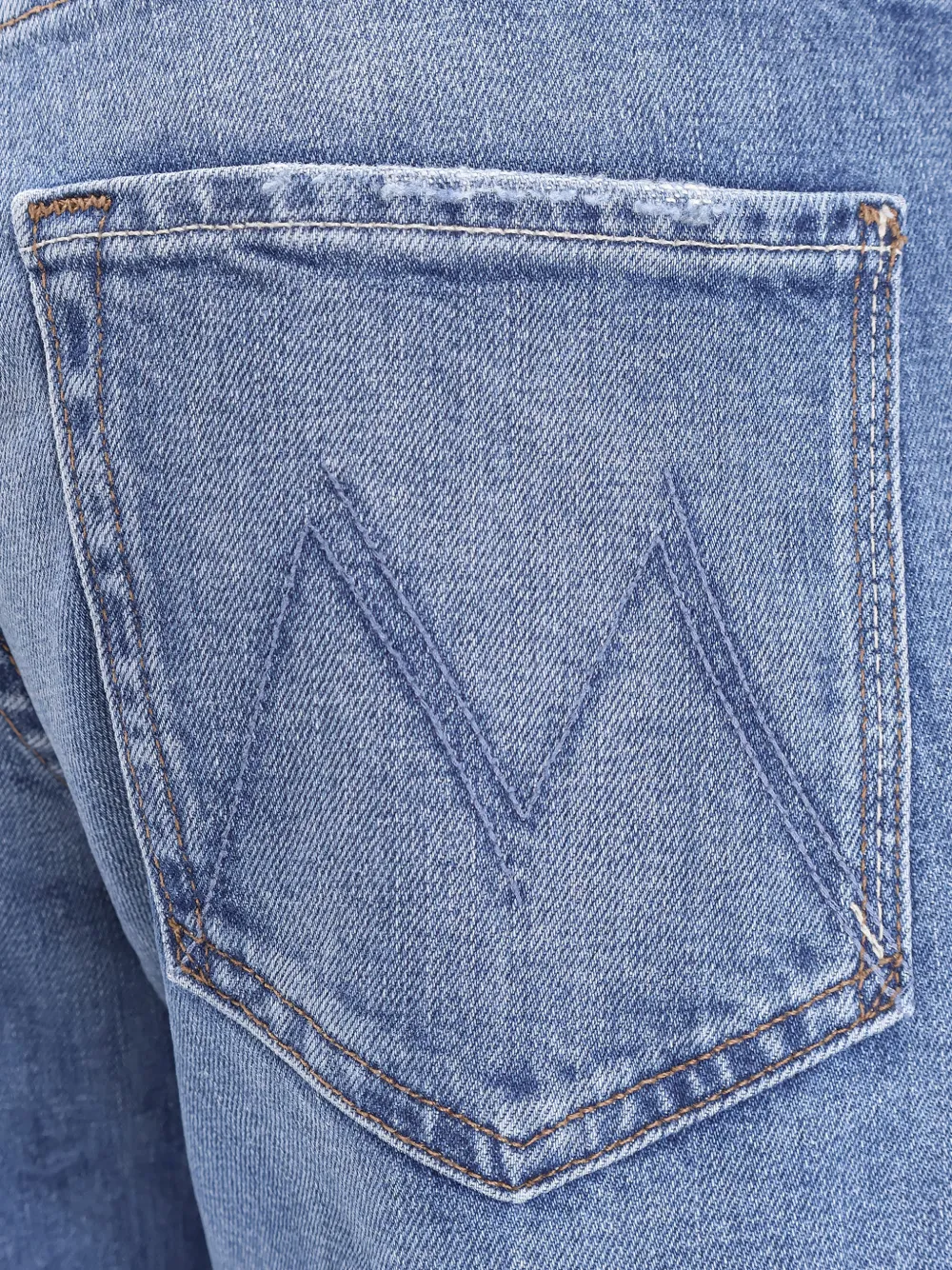 Синий с эффектом стоун-вош, пять карманов, шлевки для ремня, логотип сзади, застежка на верхнюю пуговицу, стандартный крой