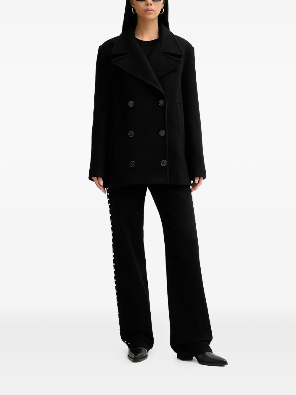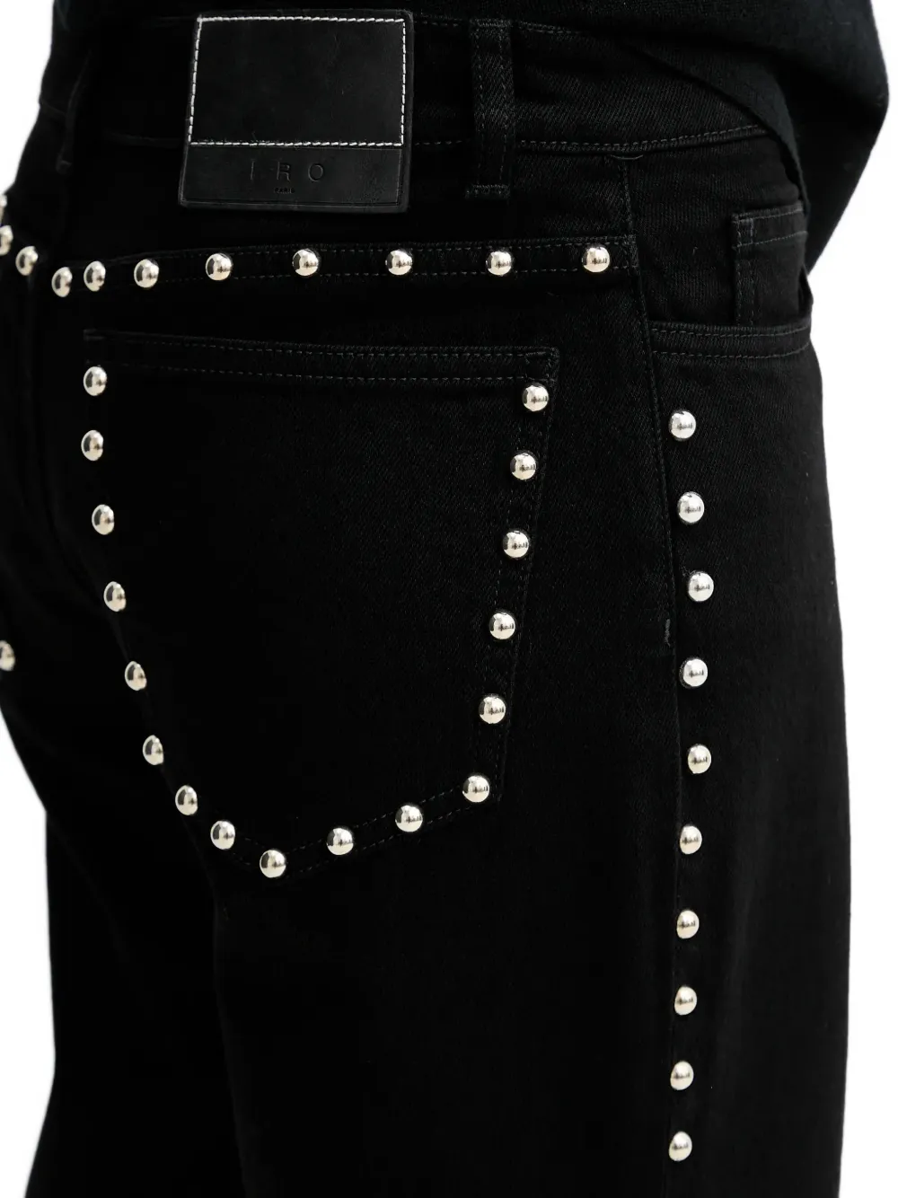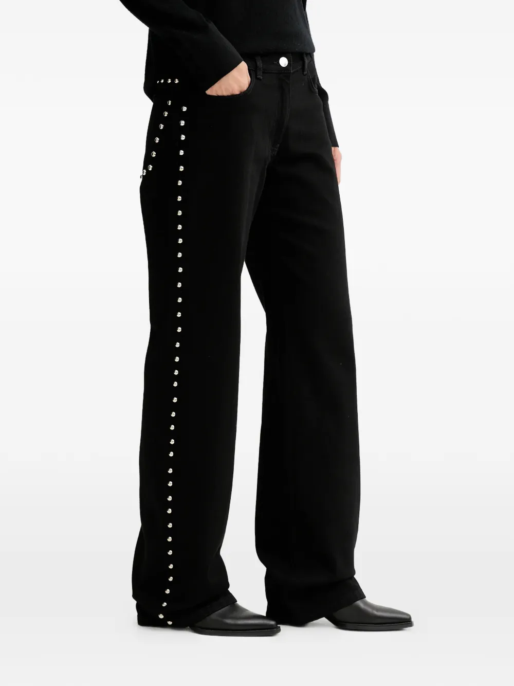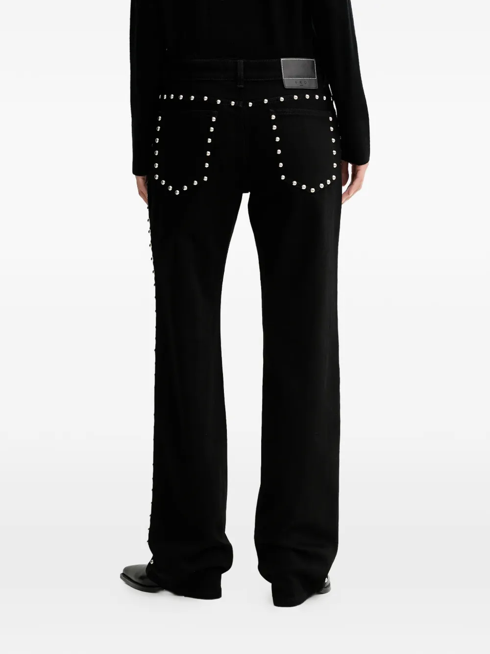 Черные прямые брюки с заклепками, пятью карманами и шлевками для ремня