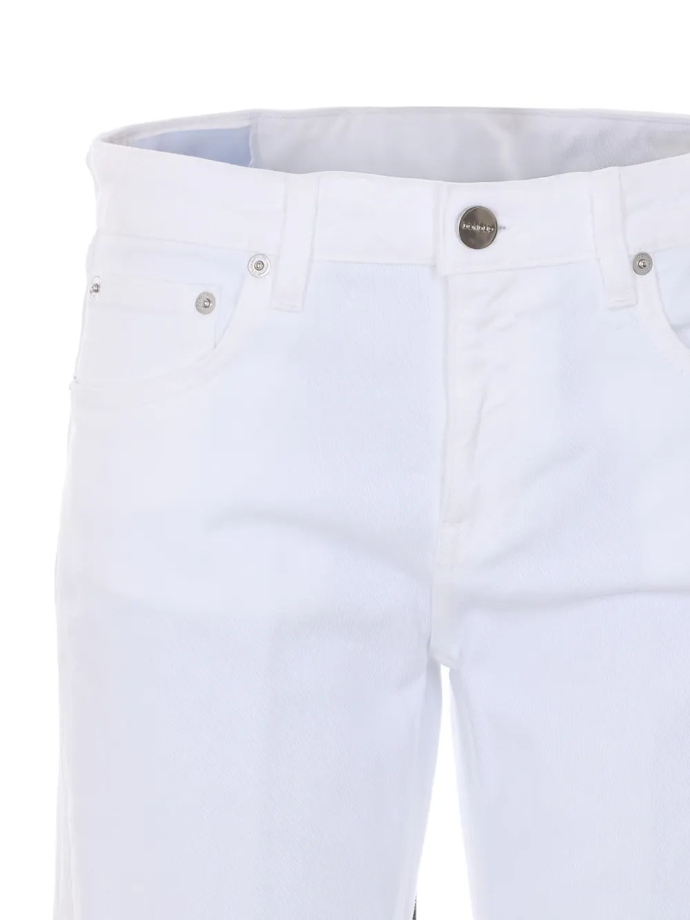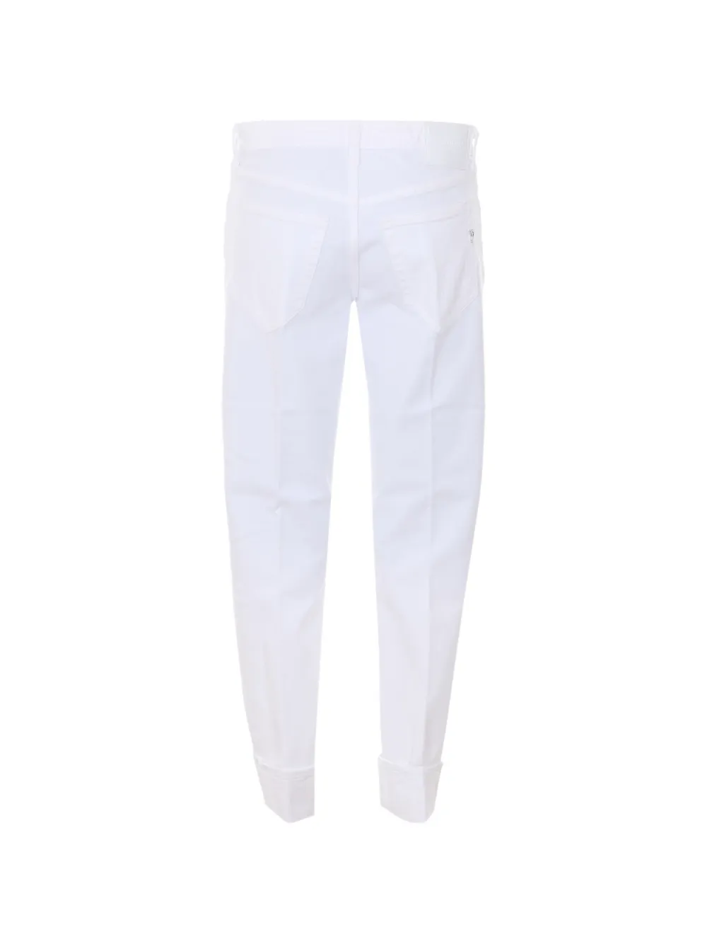 Белые джинсы с пятью карманами, застежкой-молнией и пуговицей, зауженного кроя, с манжетами на штанинах