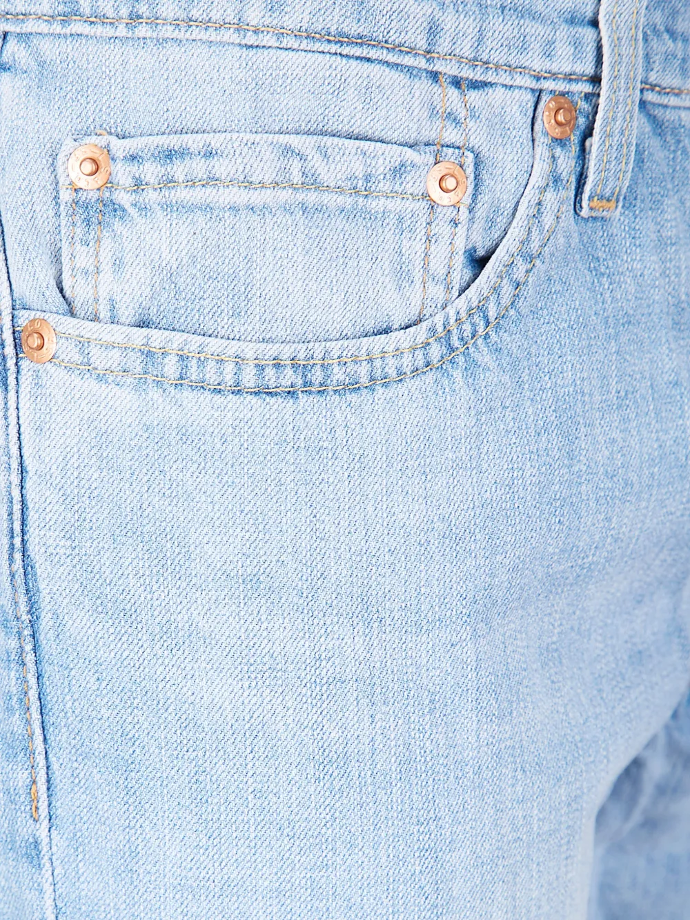 Светло-голубой, передние карманы, задние карманы, шлевки для ремня, застежка на пуговицу, тональная строчка