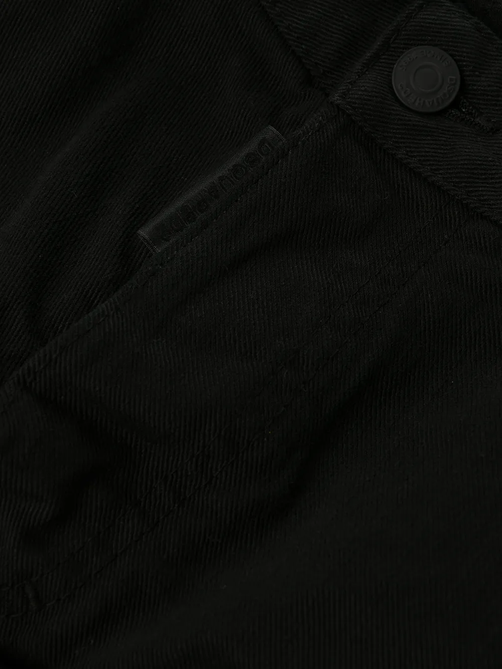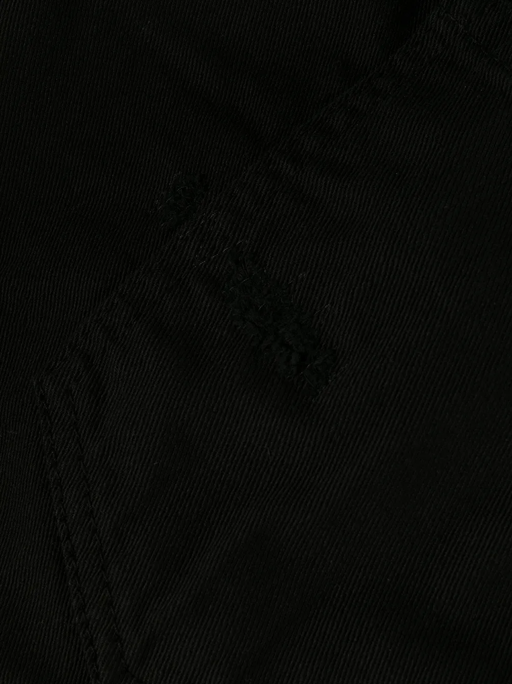 Ширинка на пуговицах, петли для ремня, классическая пятикарманная модель, эффект потертости и нашивка с логотипом сзади.