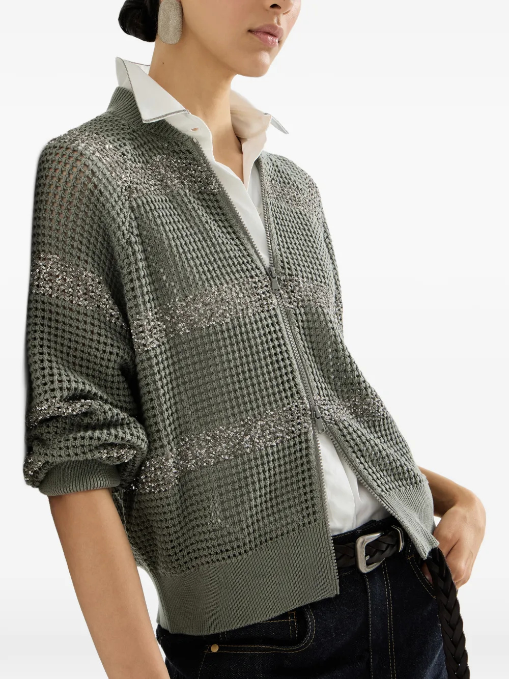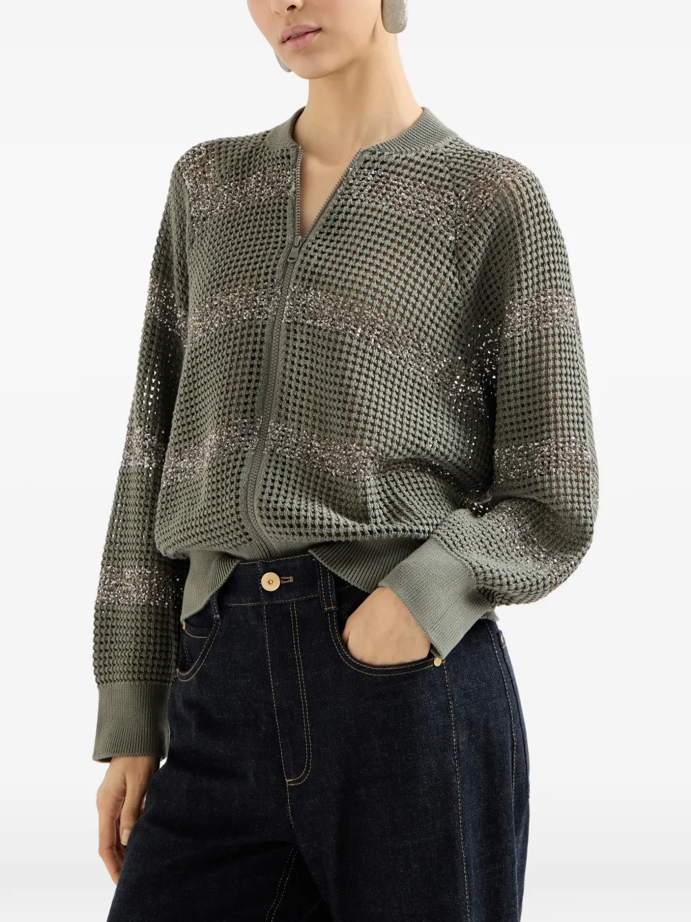 Полосатый пиджак Brunello Cucinelli, зеленый