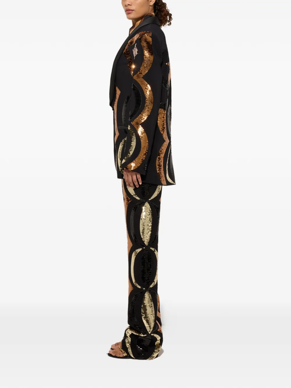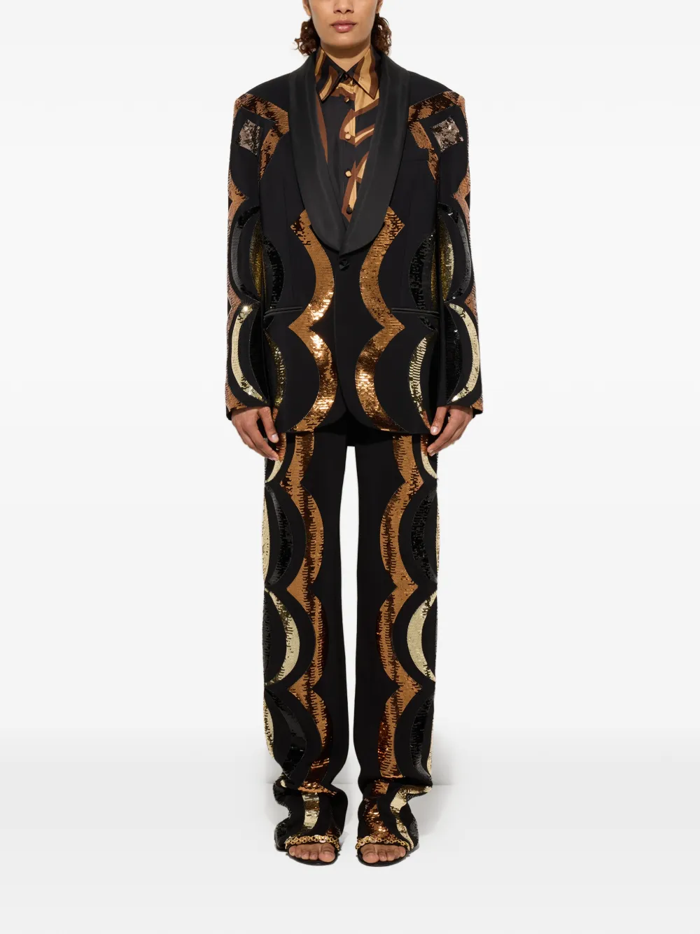 Черный с отделкой из пайеток, лацканы шалькой, однобортный
