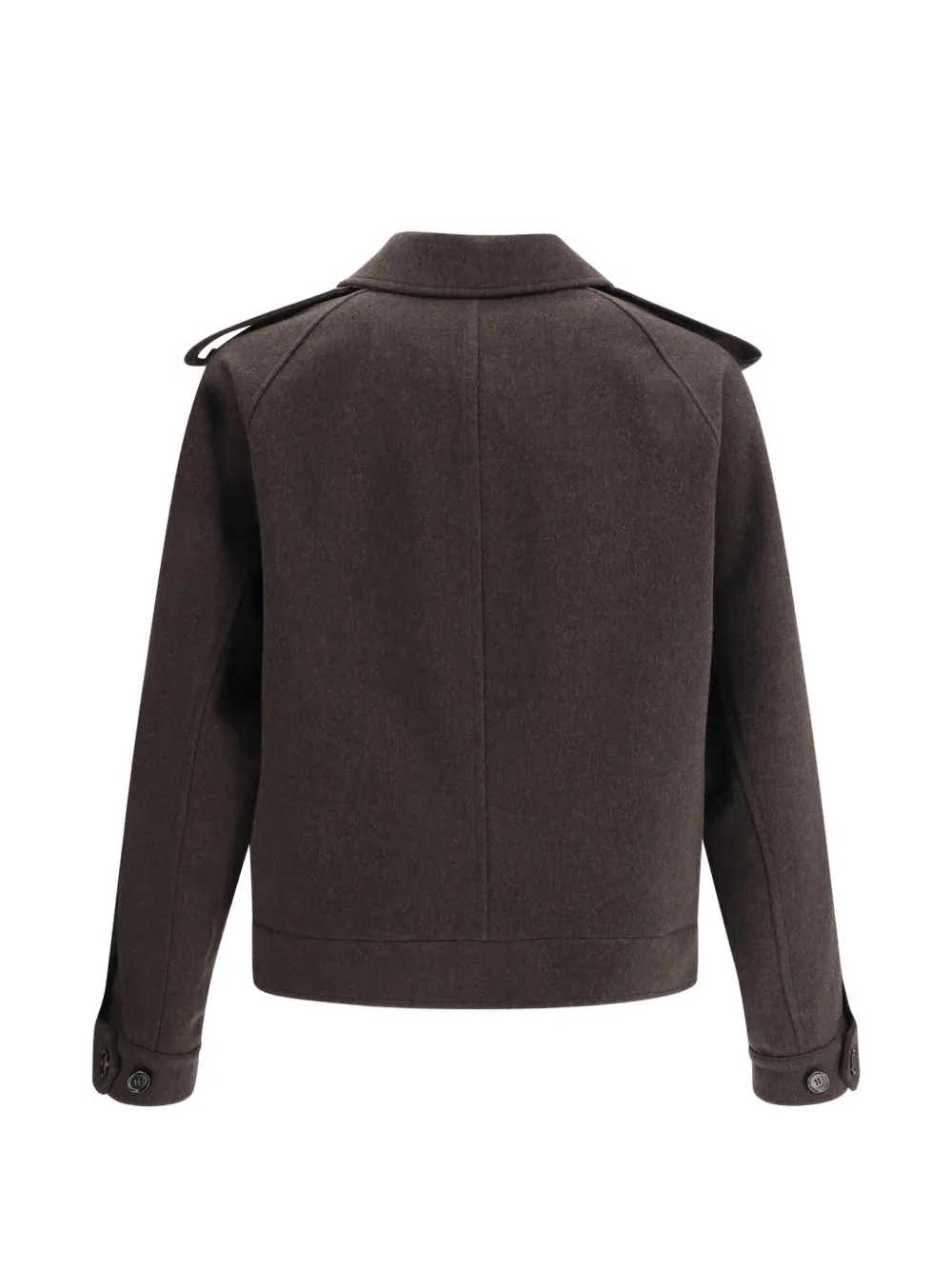 Коричневый цвет, прорезные карманы, застежка на пуговицы, погоны, длинные рукава, манжеты на пуговицах