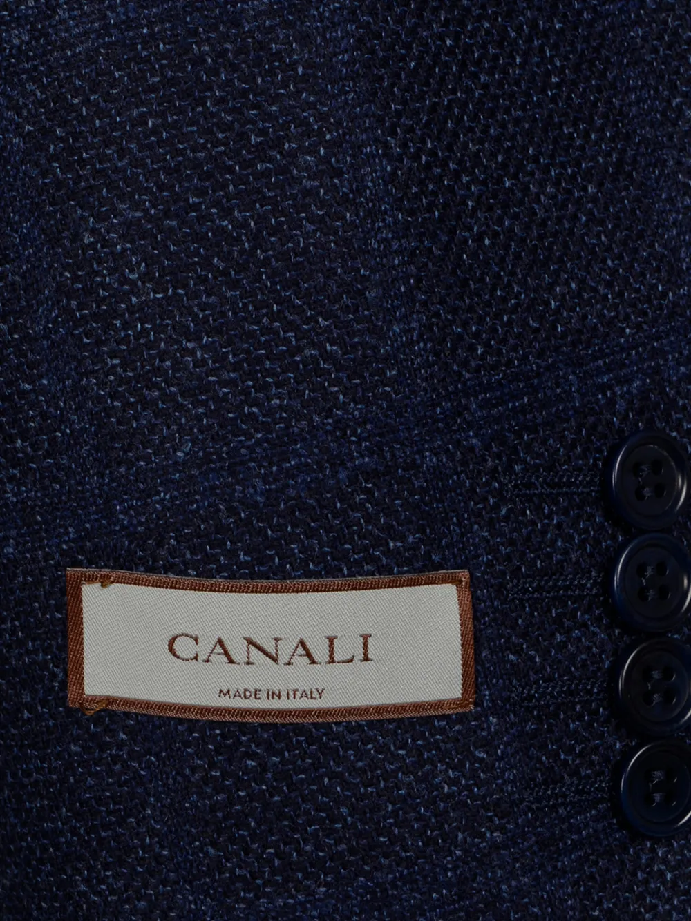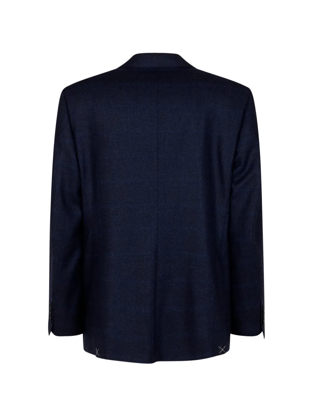 Синяя куртка в клетку с застежкой на пуговицы, лацканами с вырезом, длинными рукавами и накладными карманами