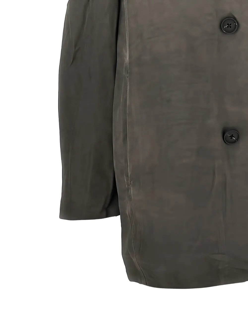 Темно-серый двубортный пиджак с застежкой на пуговицы, лацканами и длинными рукавами