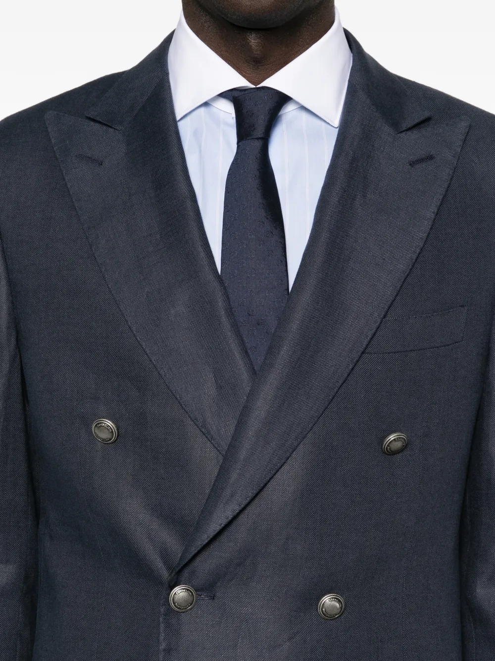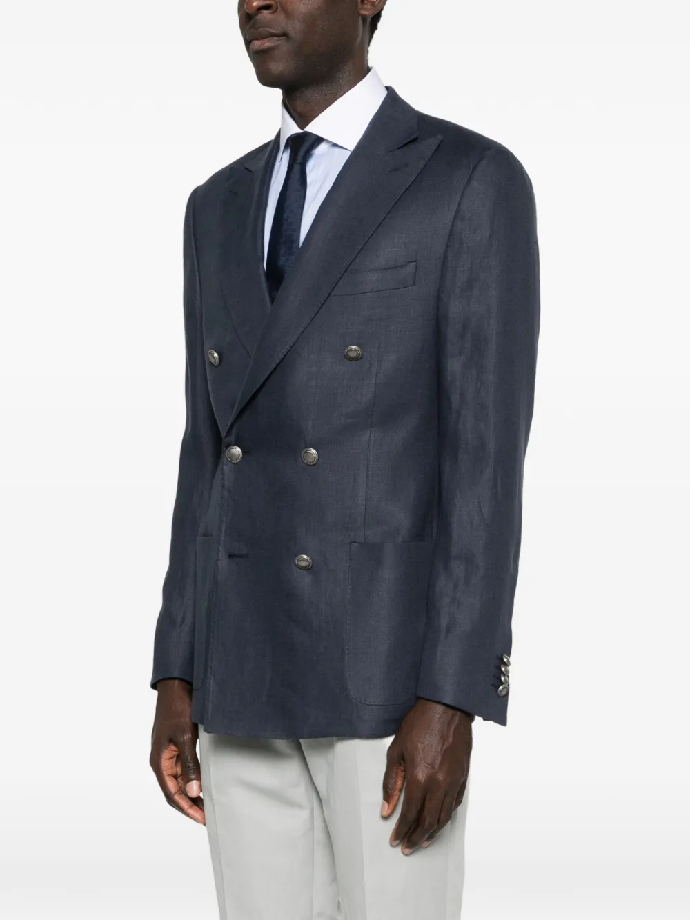 Темно-синий двубортный пиджак с лацканами с вырезом и застежкой на пуговицы