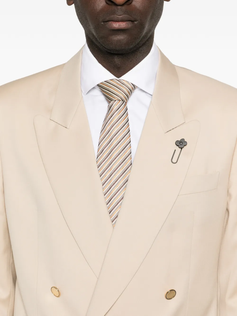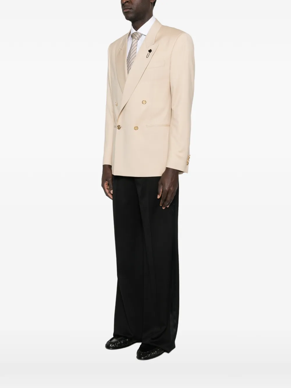 Бежевые пиковые лацканы двубортный золотистые пуговицы
