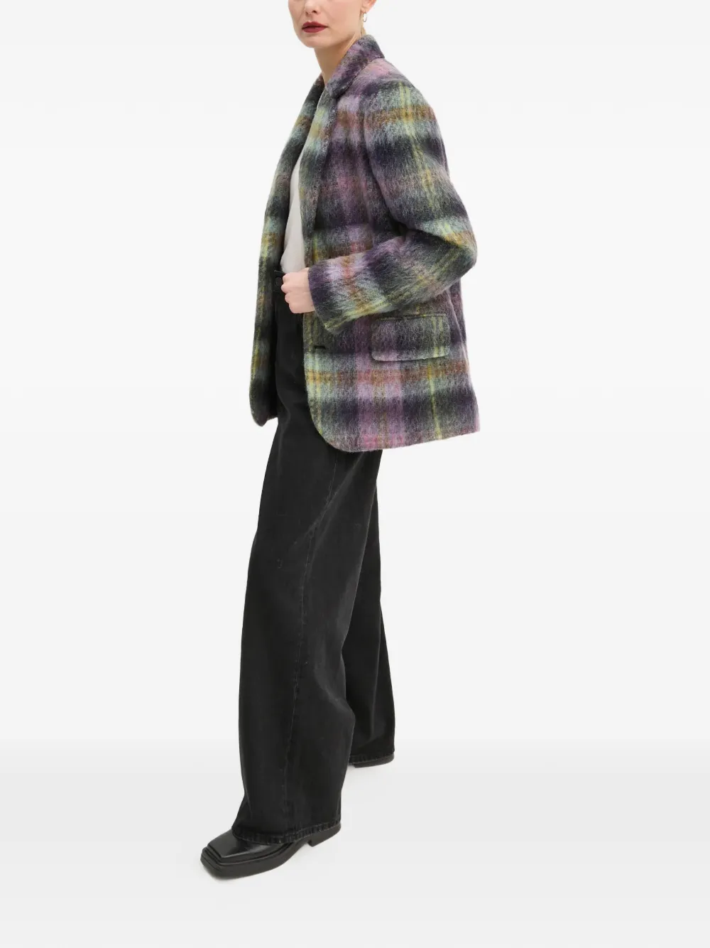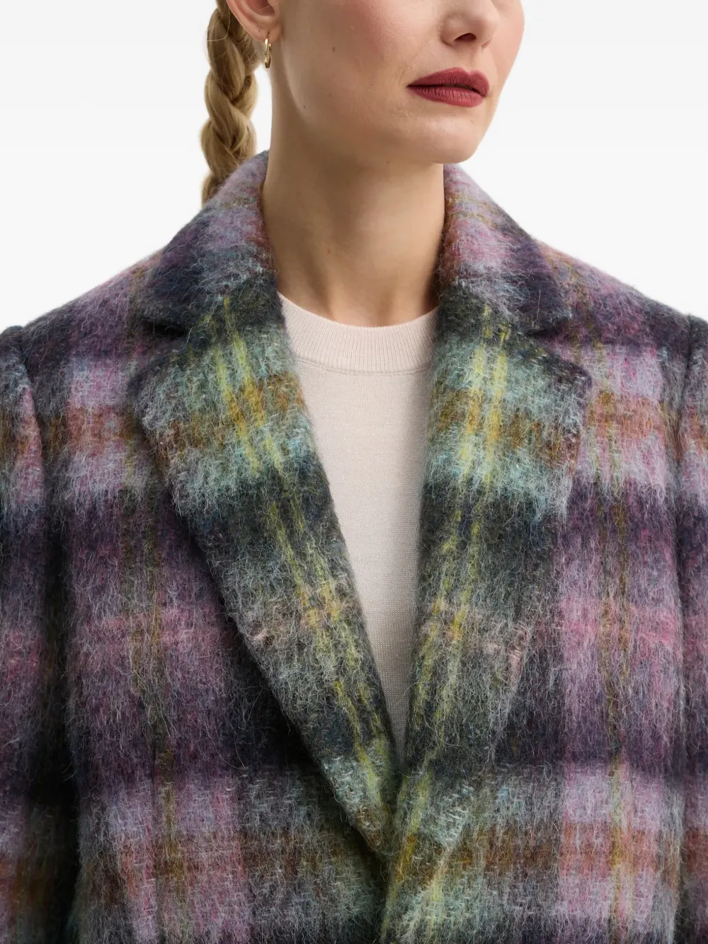 Розовый/многоцветный, в клетку, лацканы с вырезом, два передних прорезных кармана с клапанами, застежка на пуговицах, длинные рукава