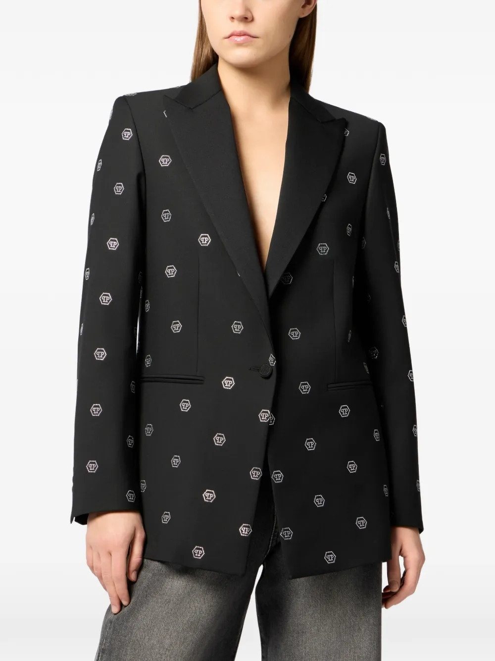 Блейзер с монограммой, украшенный стразами Philipp Plein, черный