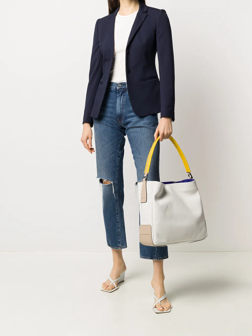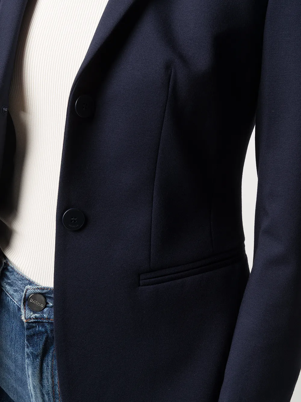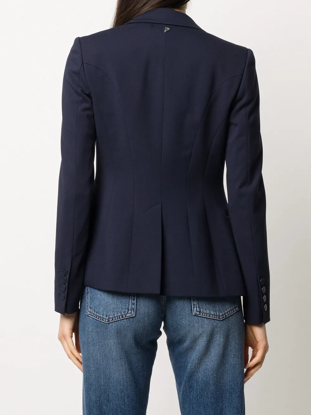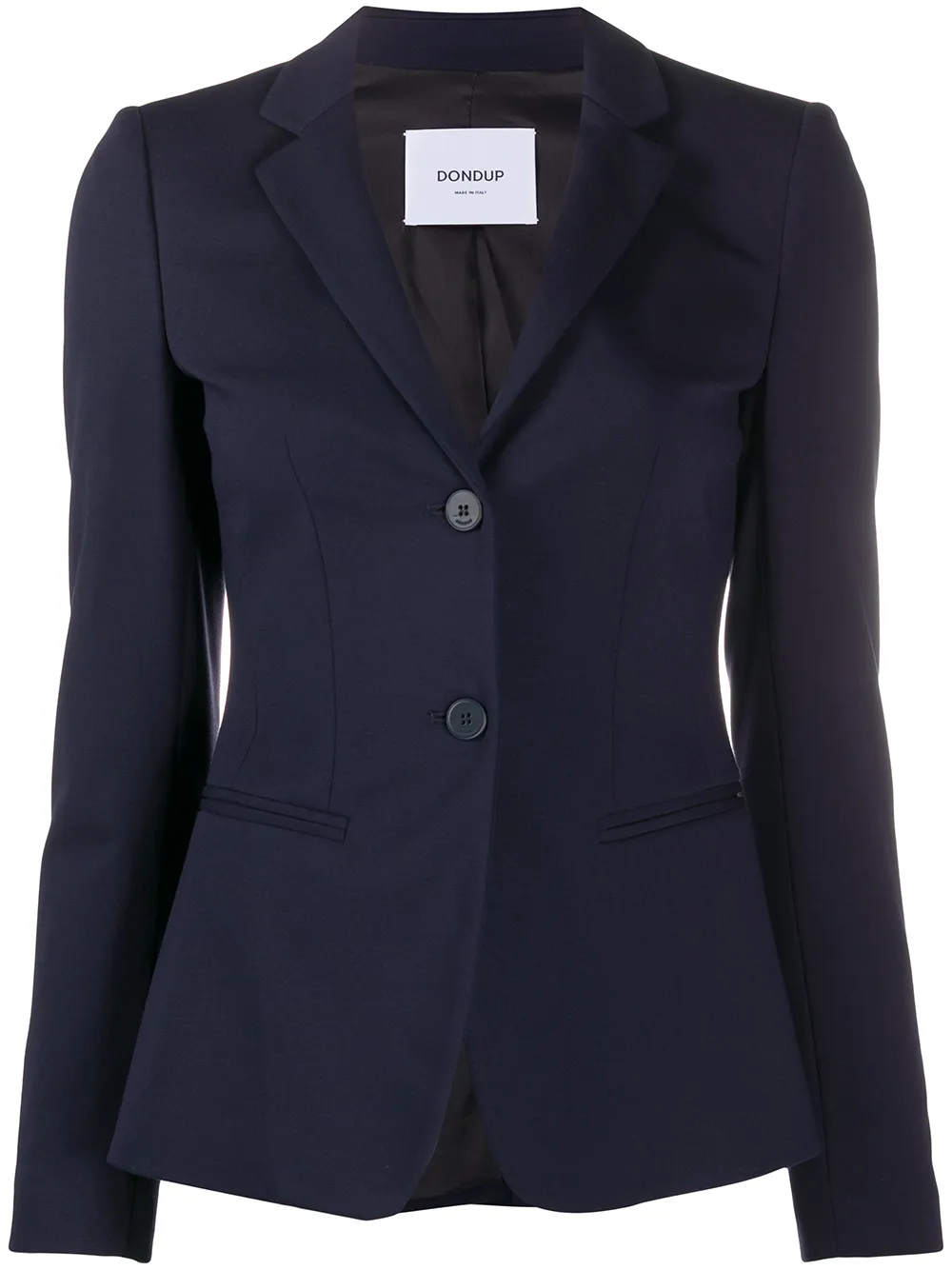 Однобортный пиджак от Dondup. Зазубренные лацканы, длинные рукава, манжеты на пуговицах, шлица сзади, застежка на пуговицах спереди и подкладка.