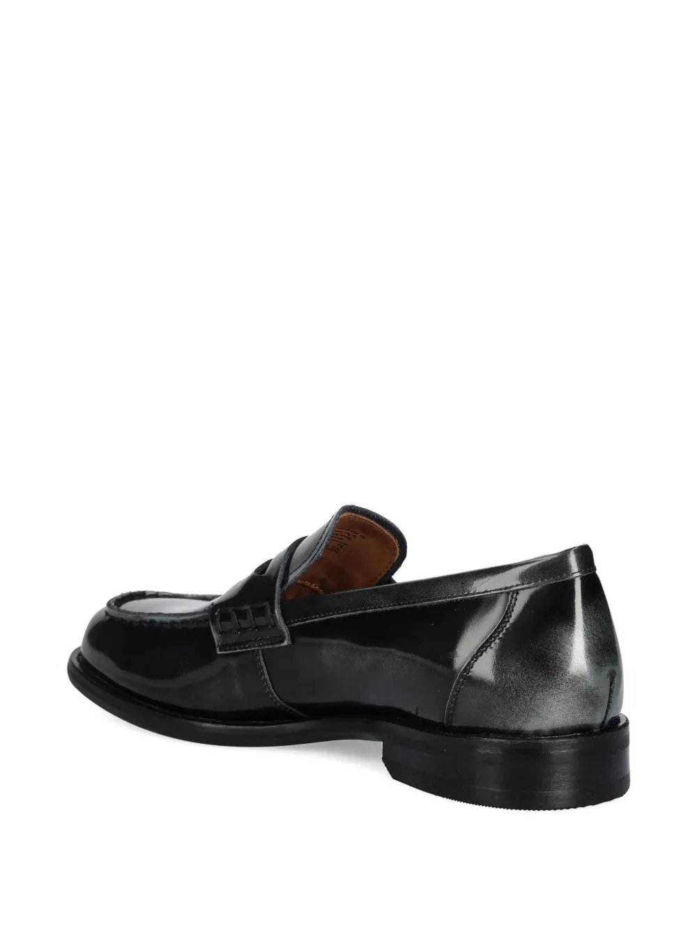 Темно-серые лоферы с прорезью для монетки, с декоративной прострочкой, без шнурков, с круглым носком и каблуком-«стек»