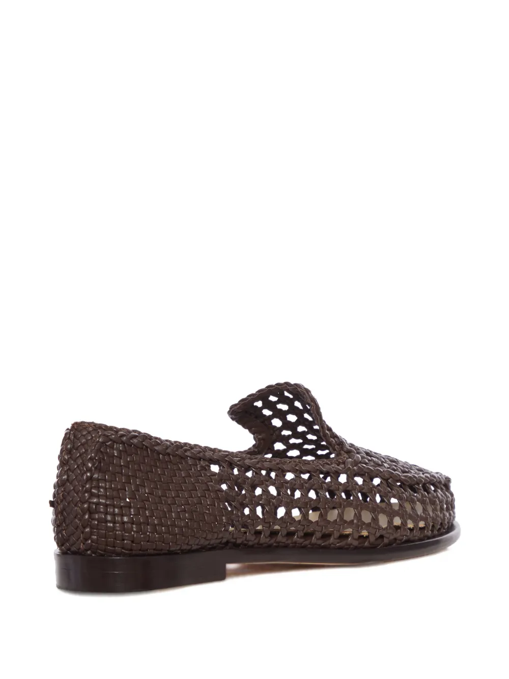 Темно-коричневый плетеный дизайн, модель без застежек, плоская подошва, носок миндалевидной формы