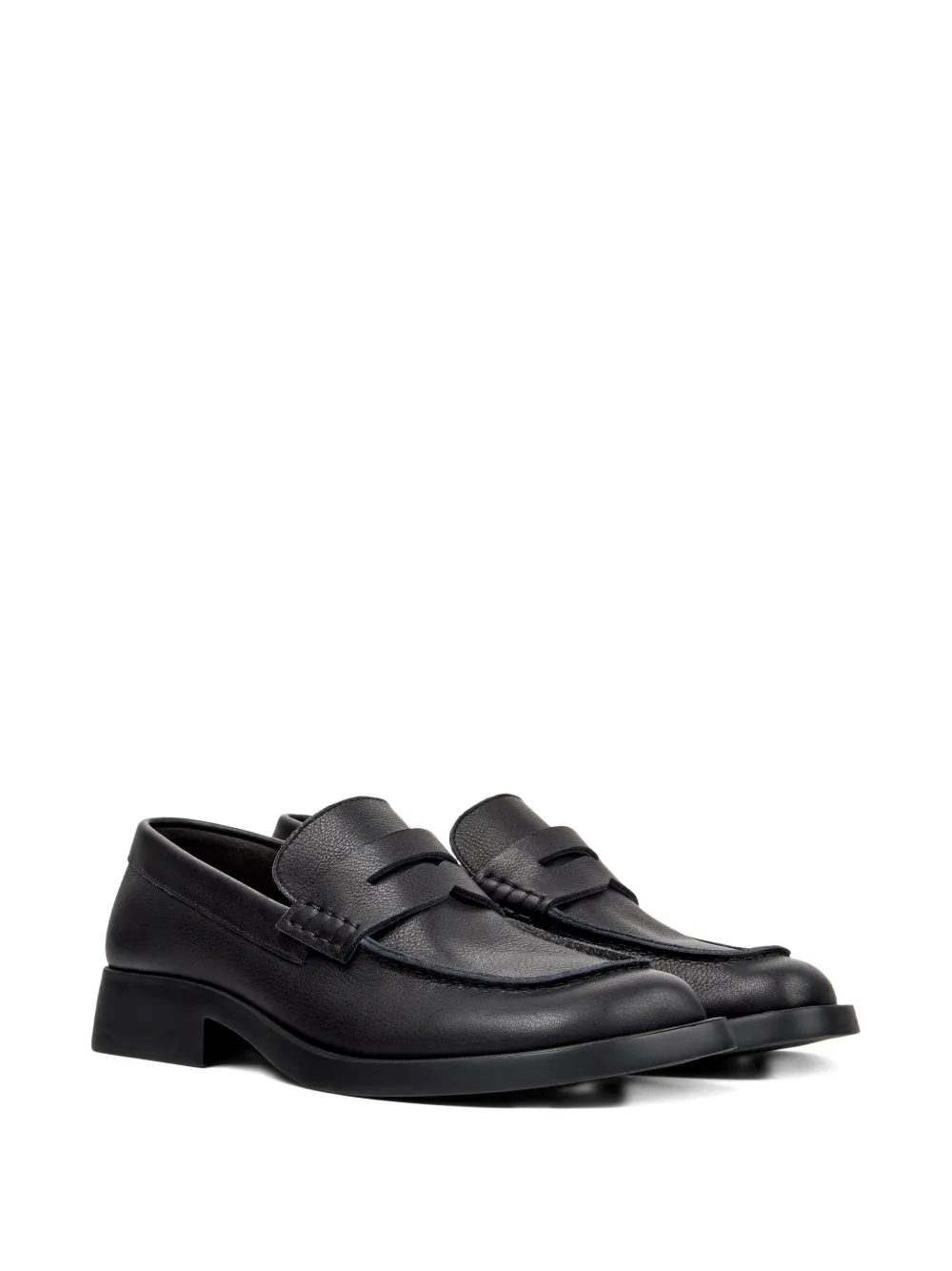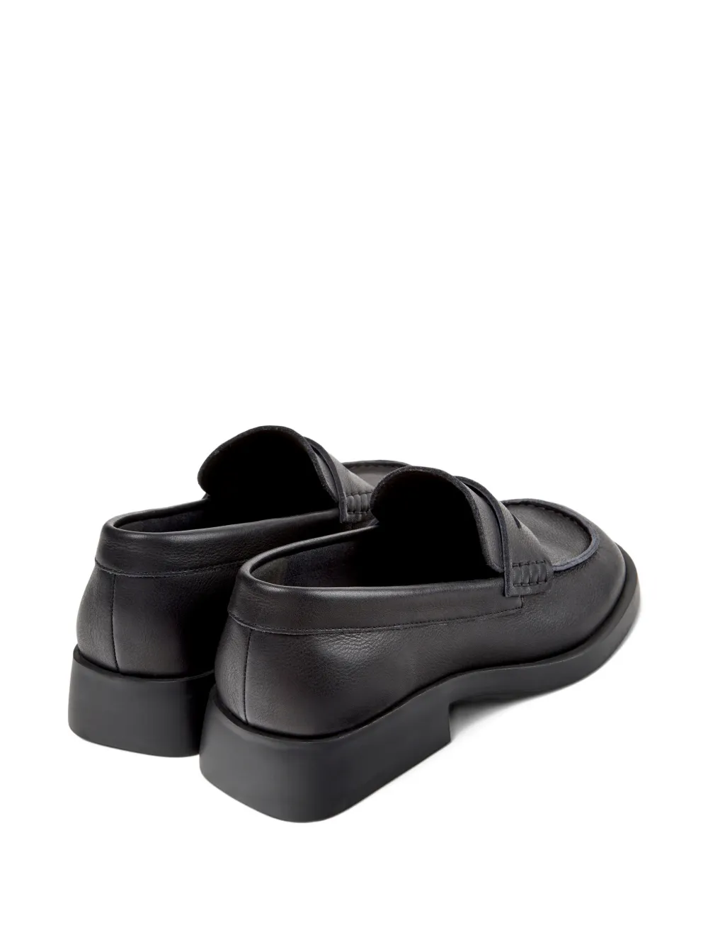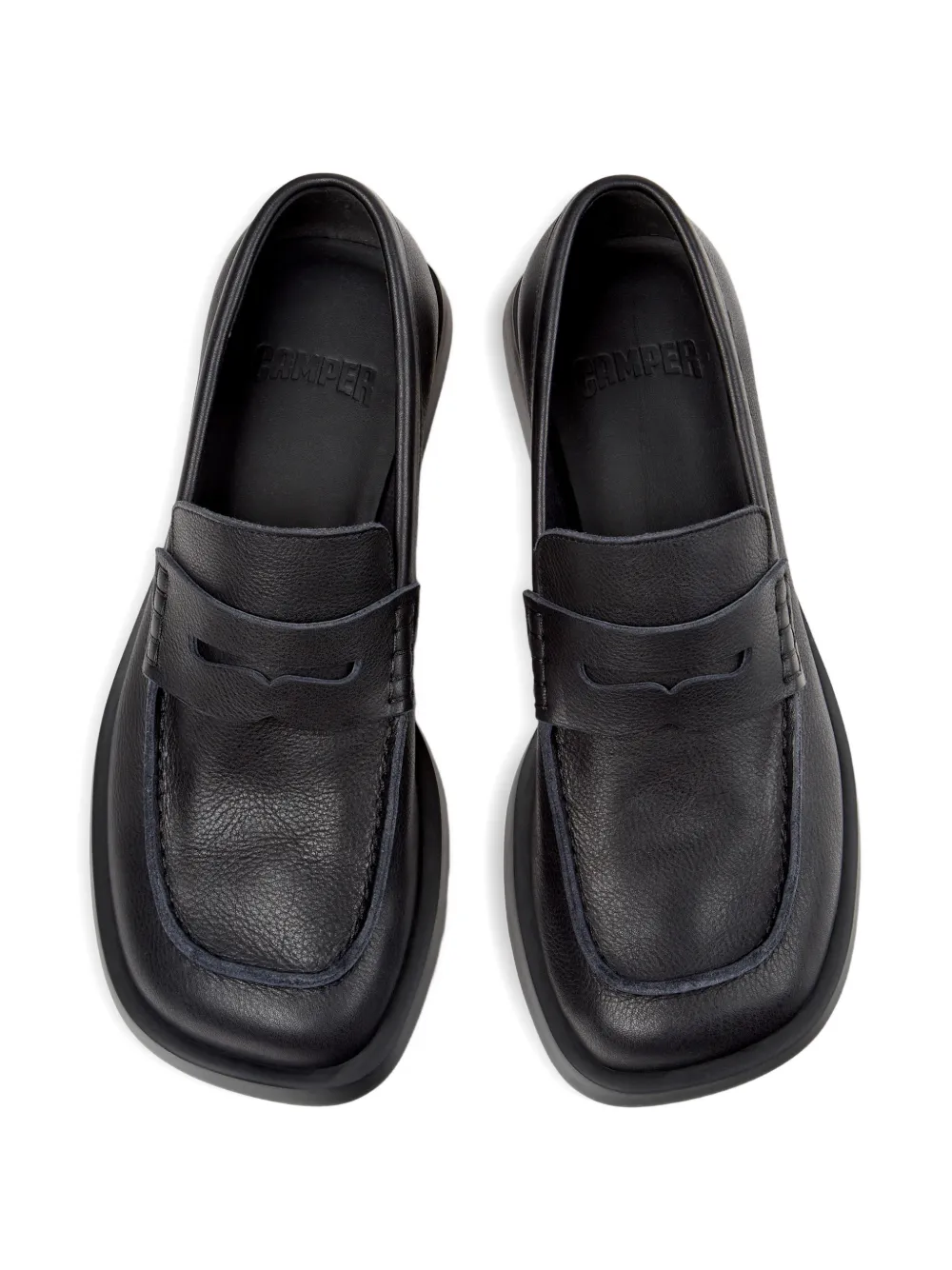 Черная модель пенни-лоферы, контрастная отстрочка, логотип на стельке, закругленный носок