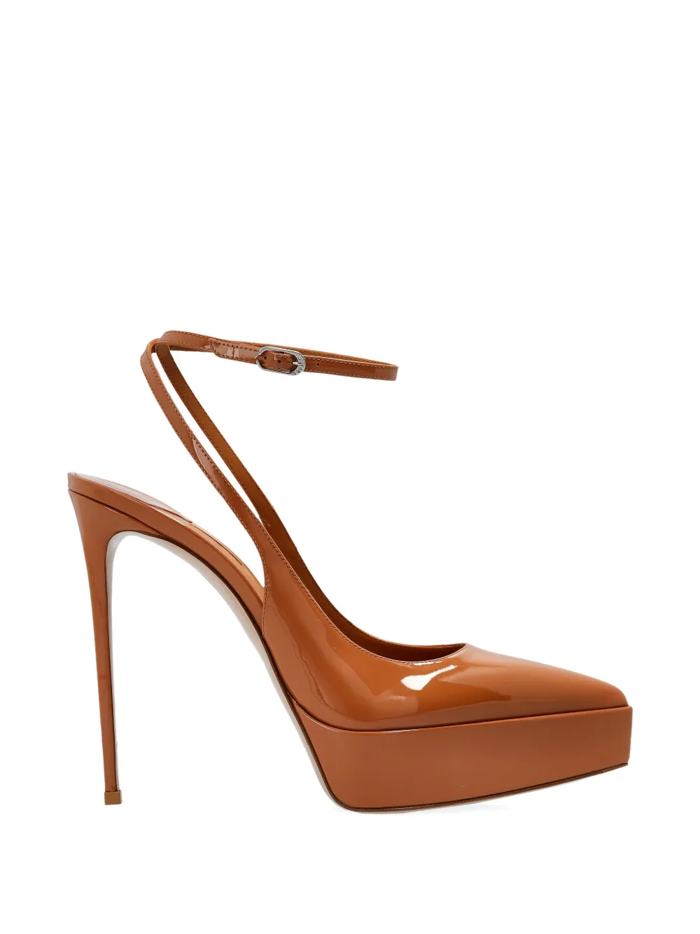 Коричневые лакированные туфли с ремешком на щиколотке, заостренным носком и платформой