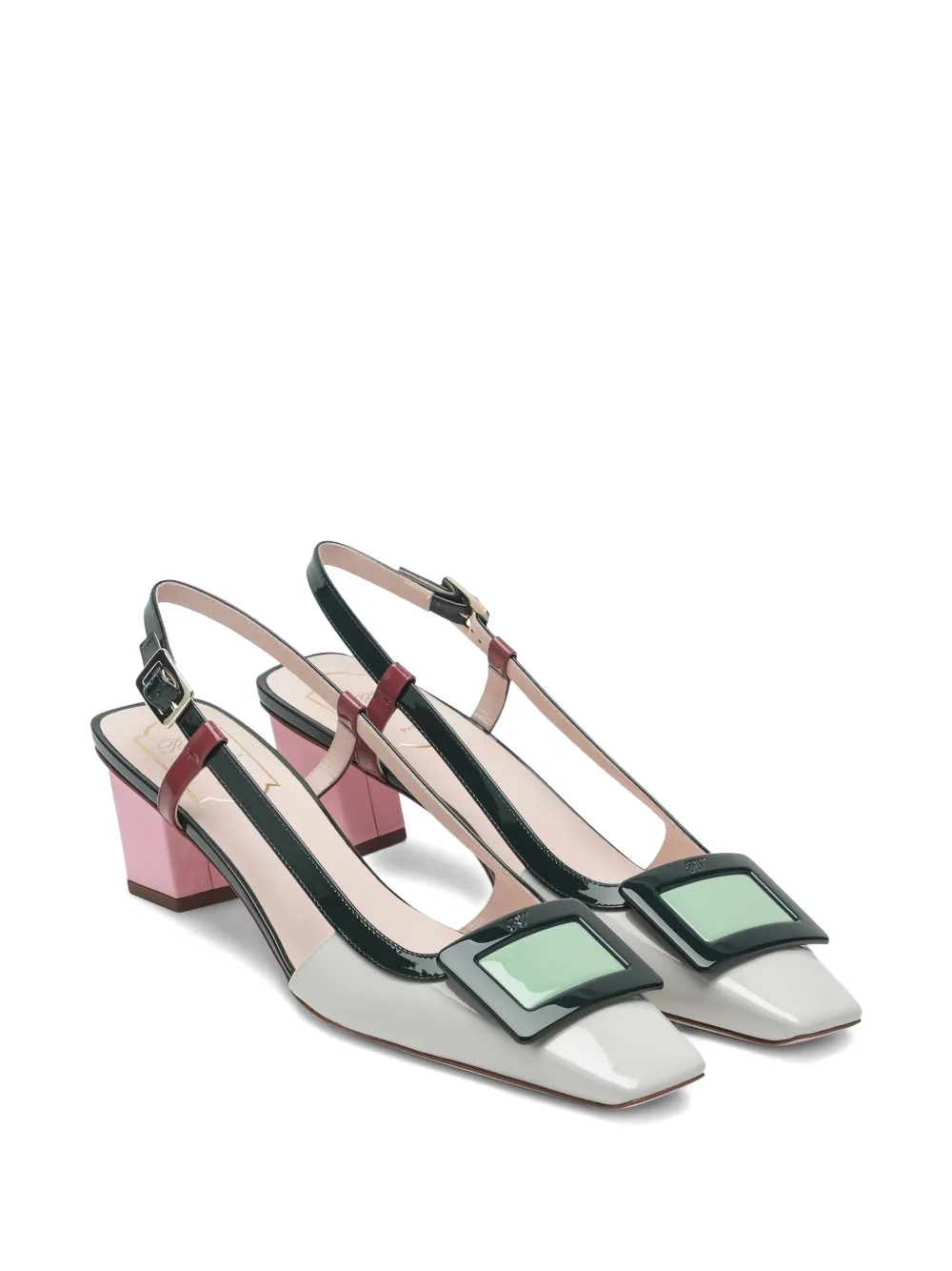Белые/розовые туфли с квадратным носком на среднем каблуке, ремешком сзади и пряжкой