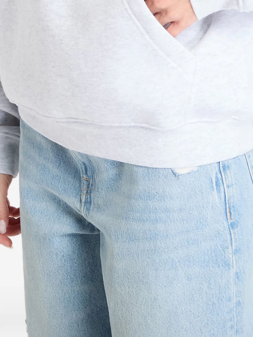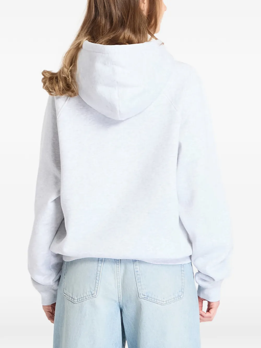 Серый худи с принтом, кулиской, карманом-кенгуру и ребристым подолом