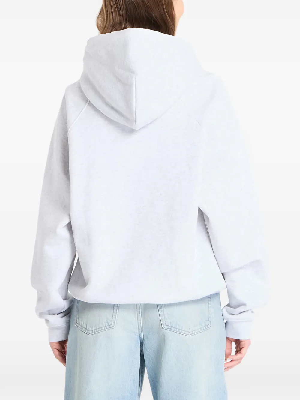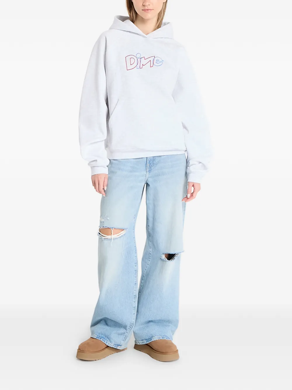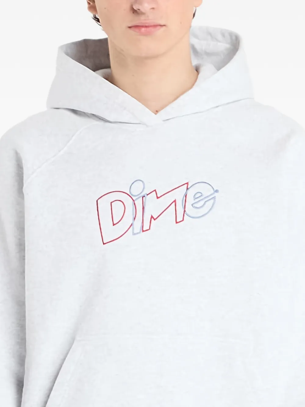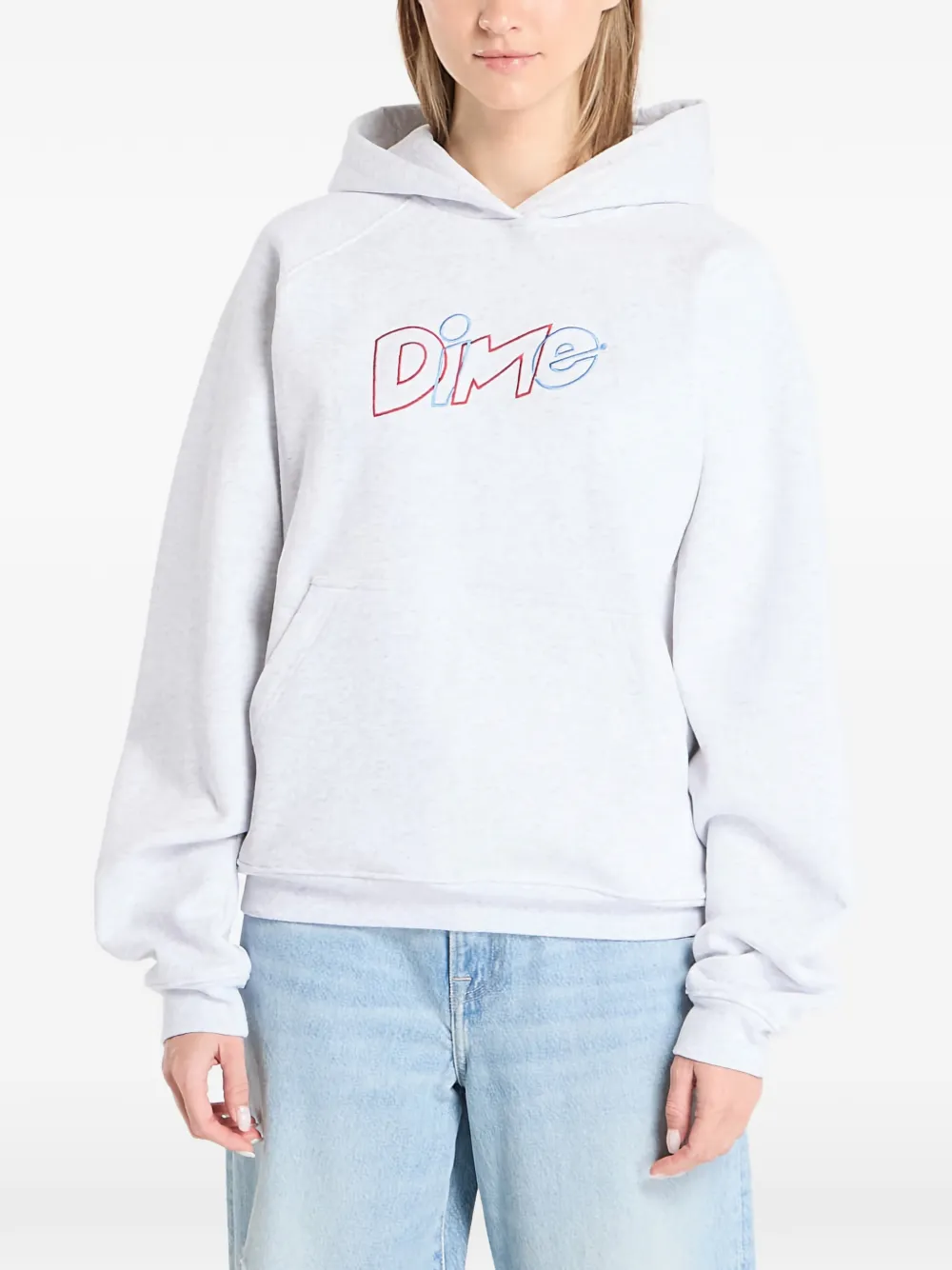 Серый худи с вышитым логотипом, передним карманом-кенгуру, длинными рукавами и ребристым подолом