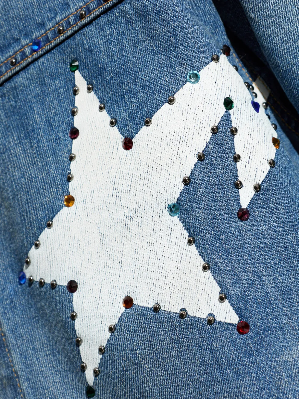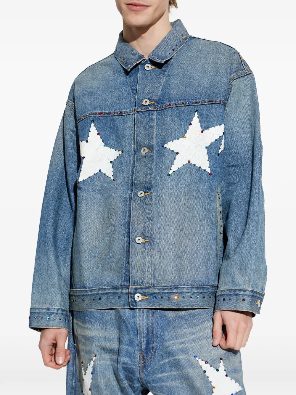 Аппликация в виде синей звезды, украшение из драгоценных камней, застежка на пуговицы, классический воротник, манжеты на пуговицах