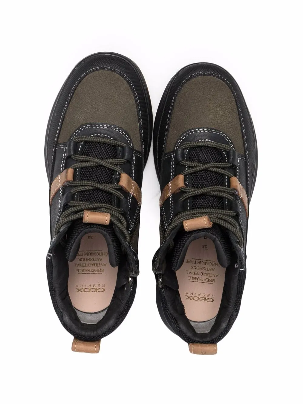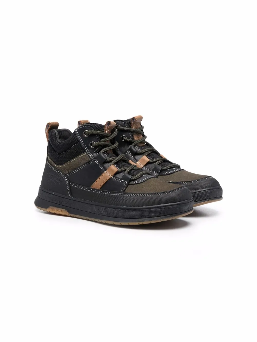 Стиль колор-блок, петля для подтягивания сзади, закругленный носок, шнуровка спереди, стелька с логотипом и плоская резиновая подошва.