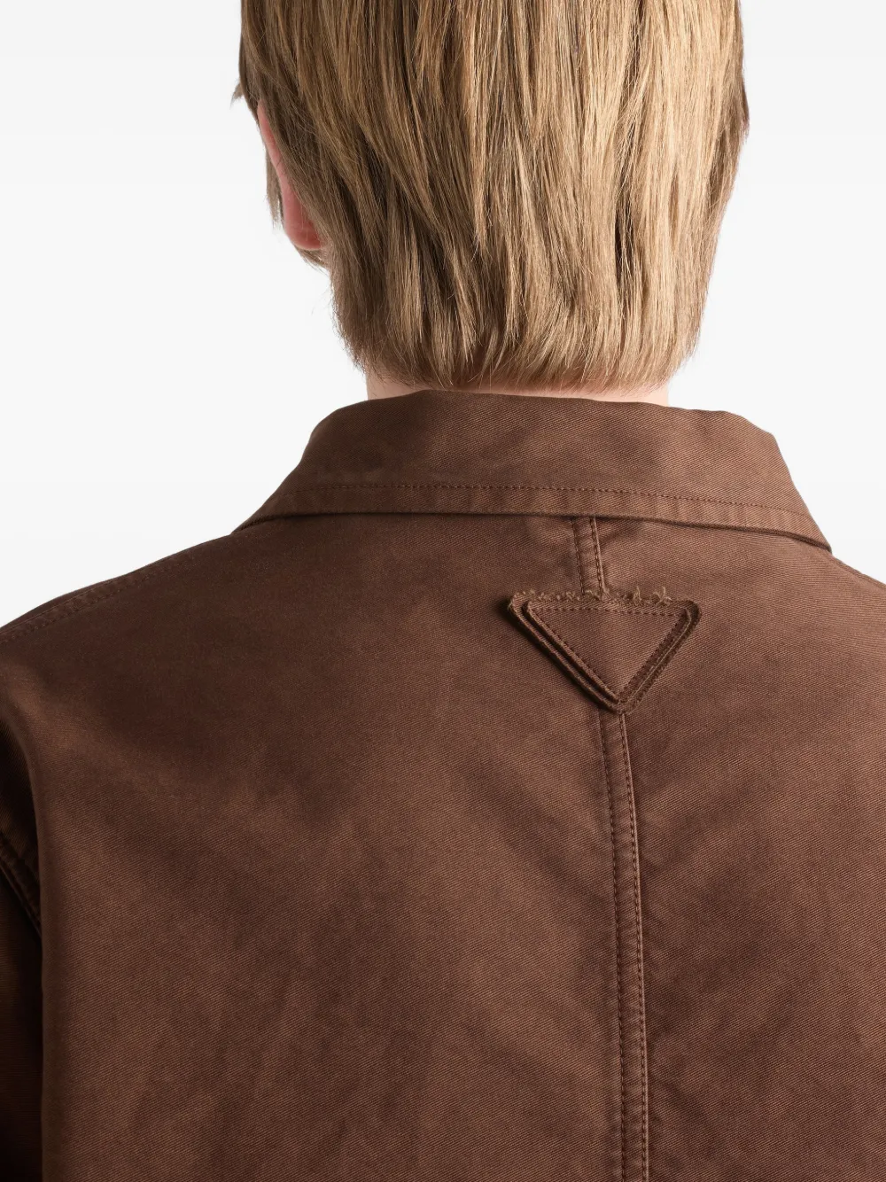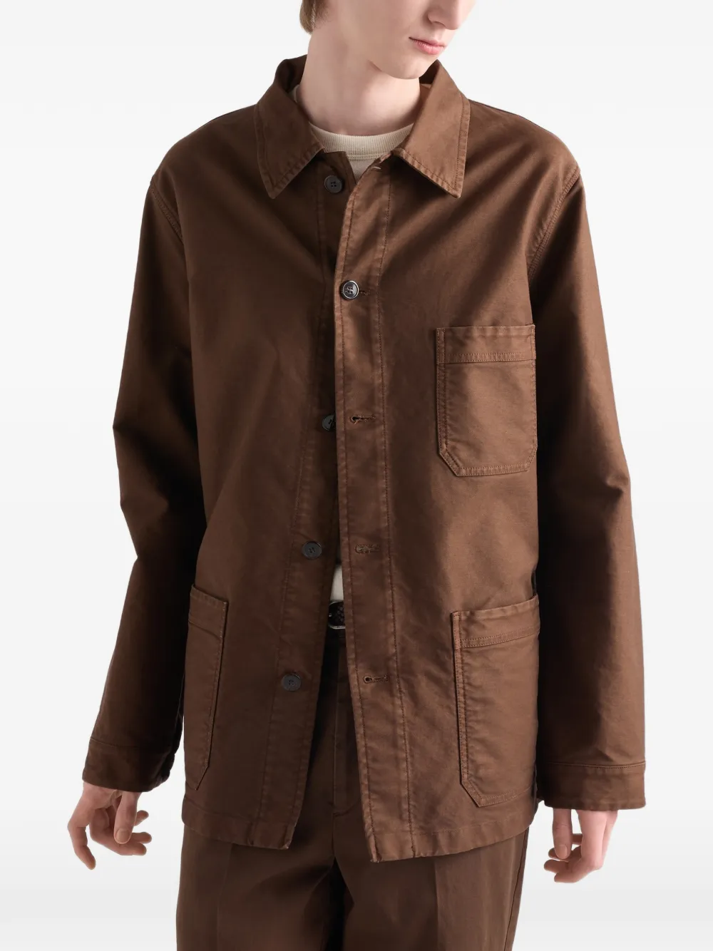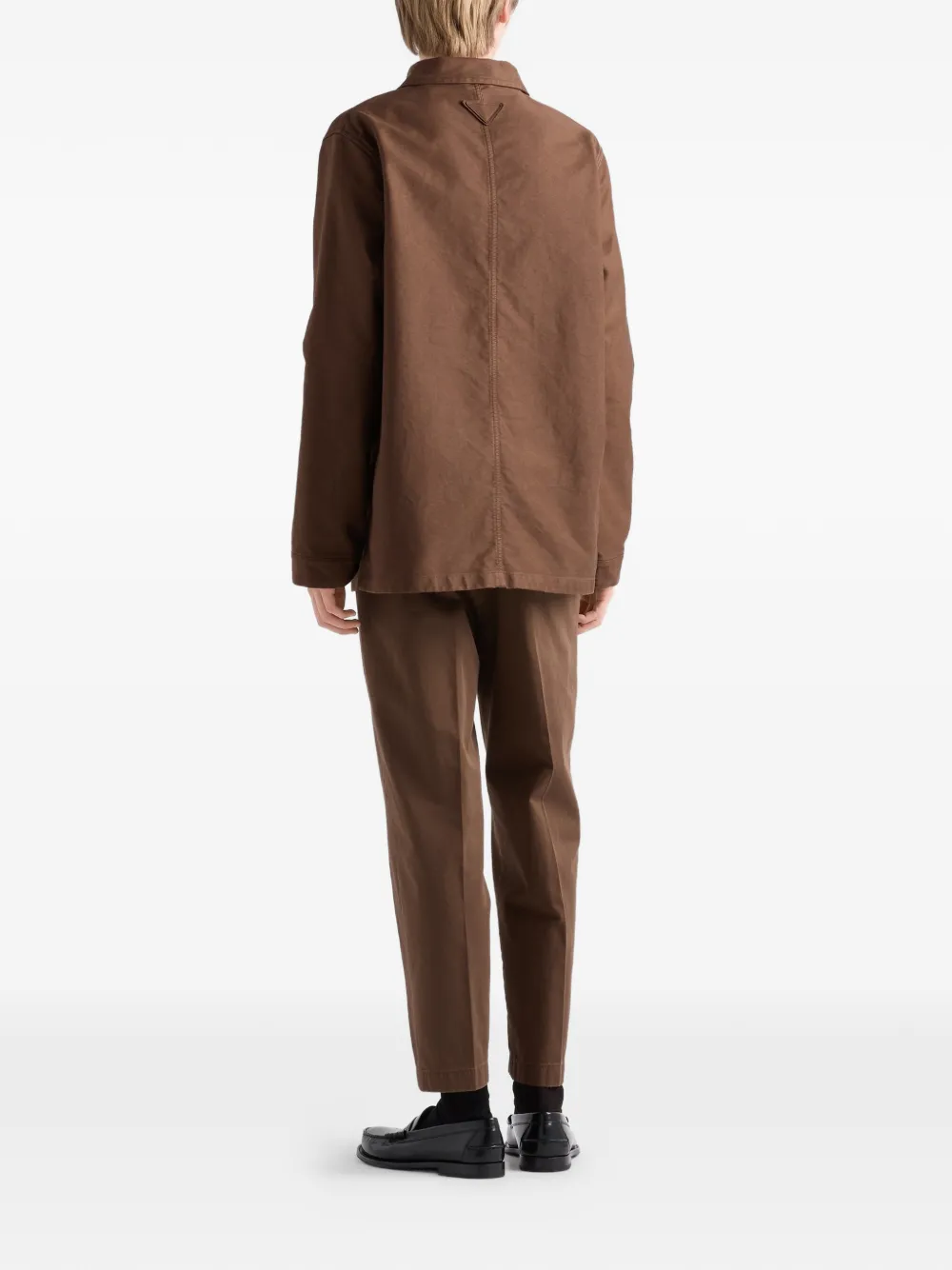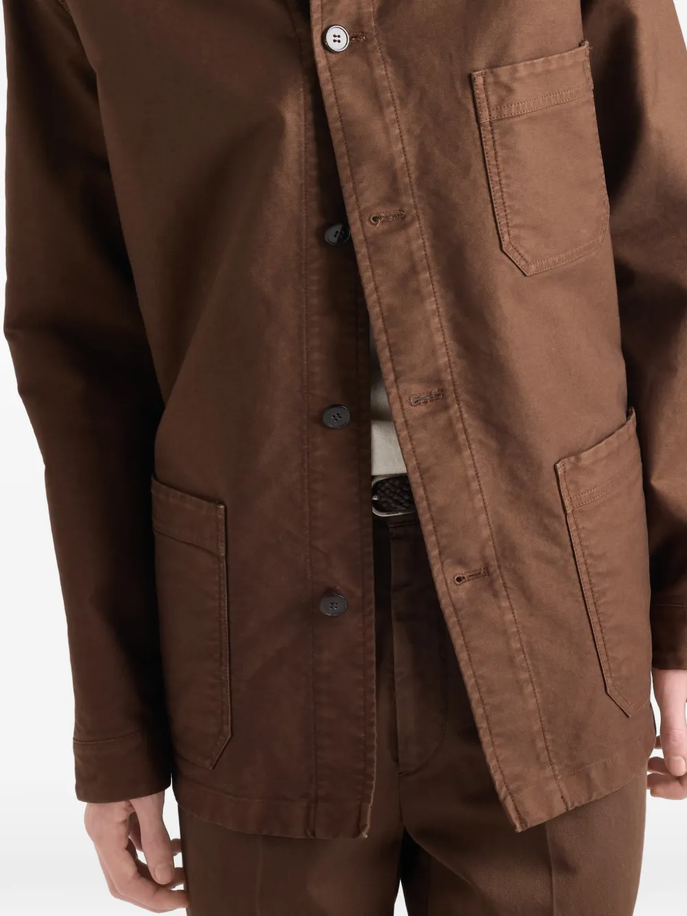 Практичная простота рабочей одежды вдохновила на создание этой хлопковой куртки-блузона с универсальным характером. Прямой силуэт, дополненный просторными накладными карманами, завершается однотонным треугольным логотипом.