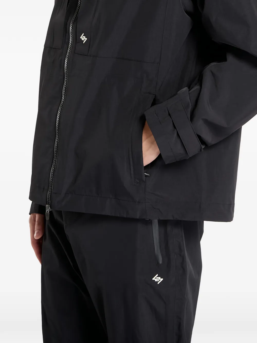 Черная толстовка с капюшоном, застежкой-молнией, длинными рукавами, передними карманами, с логотипом